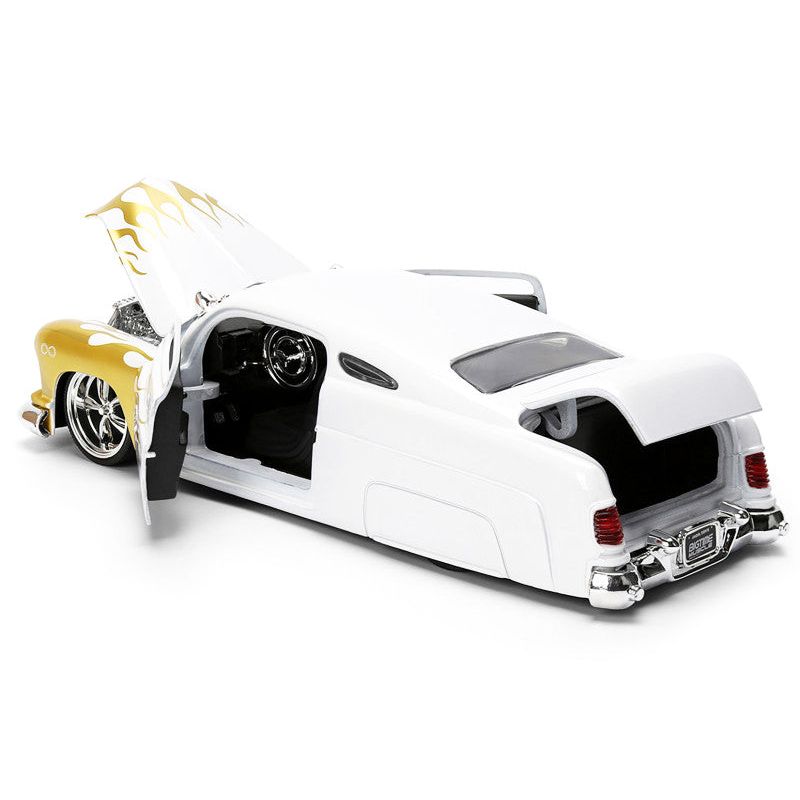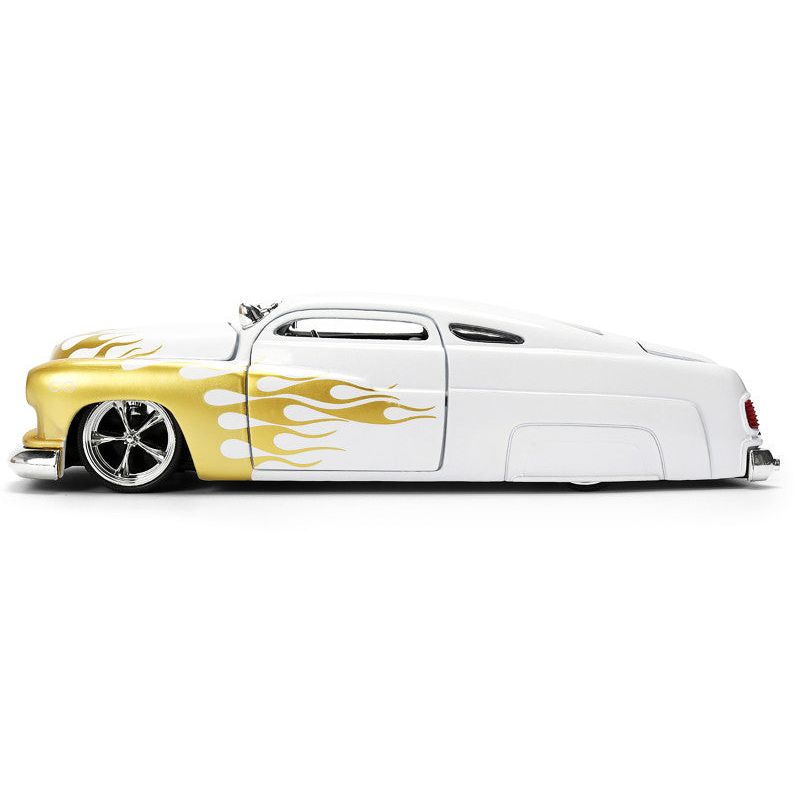 - Brand new 1/24 scale diecast car model of 1951 Mercury Coupe White with Gold Flames "Bigtime Muscle" Series die cast model car by Jada.