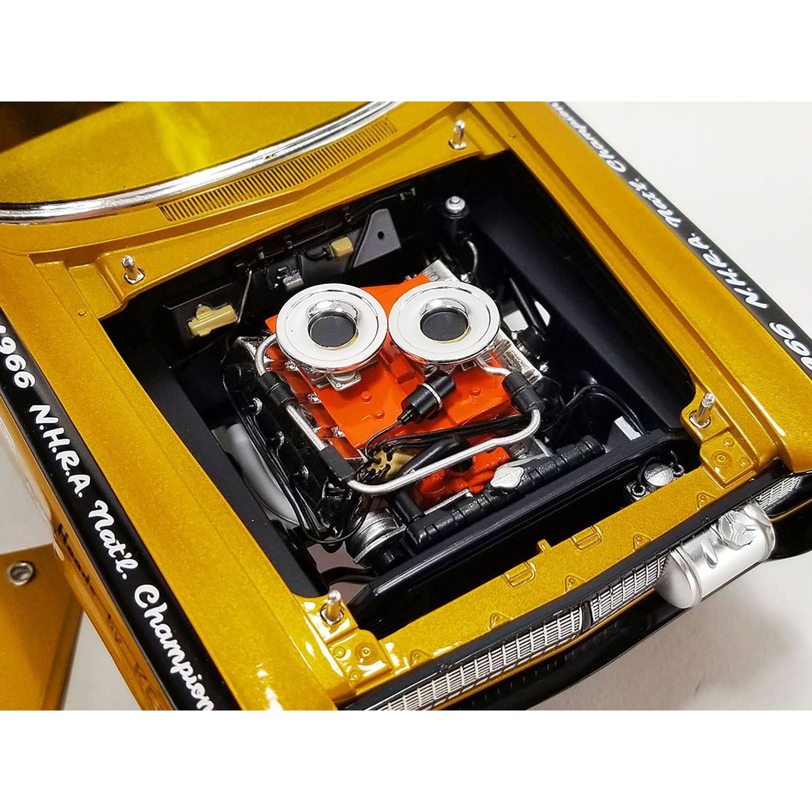 1965 Plymouth AWB (Altered Wheel Base) Gold Metallic with Graphics and Orange-Tinted Windows "UFO" Limited Edition to 636 pieces Worldwide 1/18 Diecast Model Car by ACME
