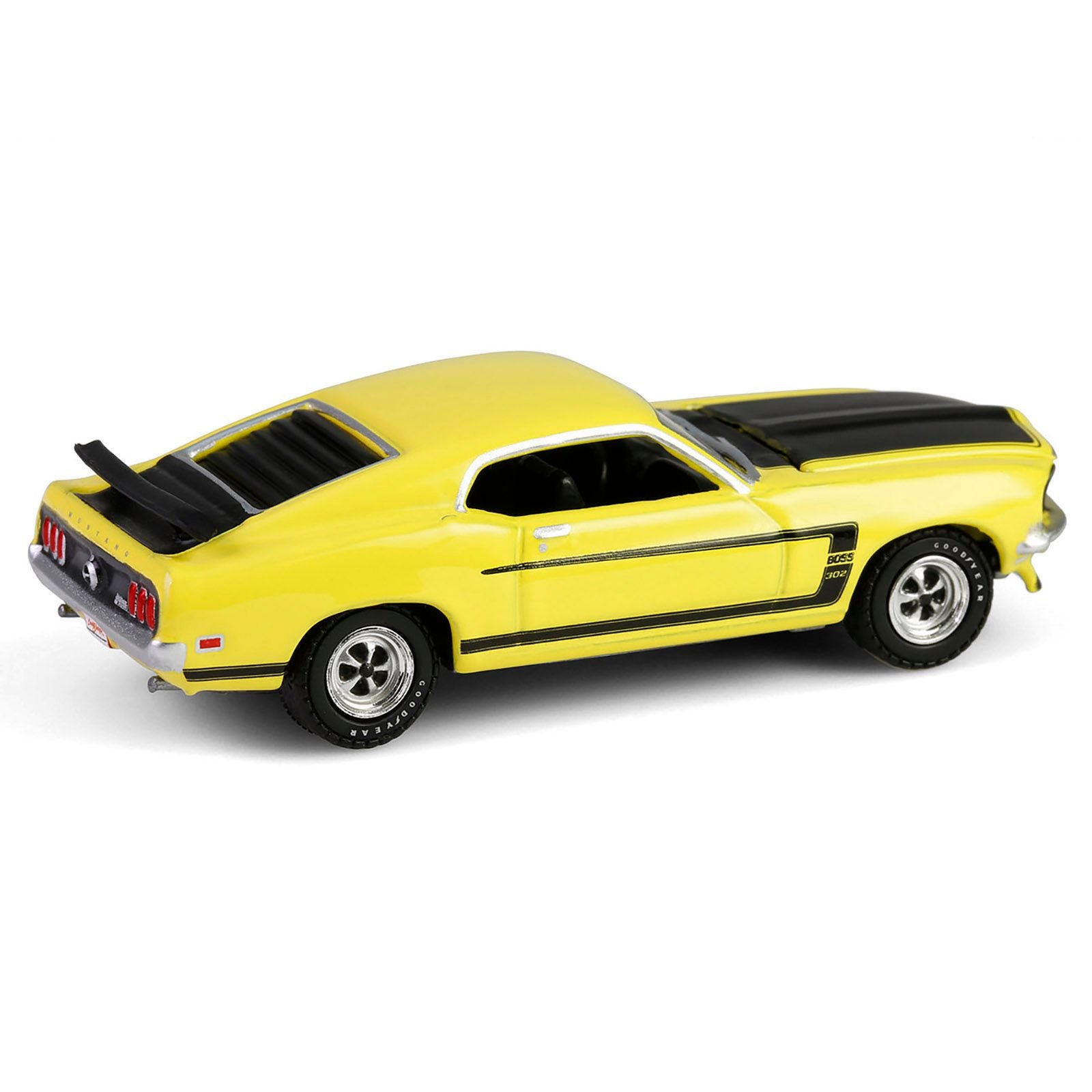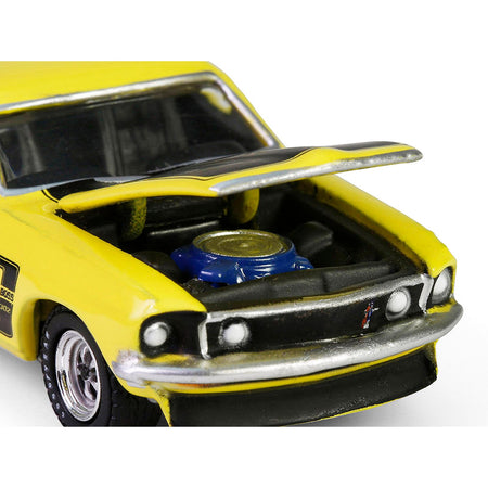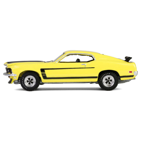 1969 Ford Mustang Boss 302 Bright Yellow with Black Hood and Stripes "Barrett-Jackson" Series 15 1/64 Diecast Model Car by Greenlight