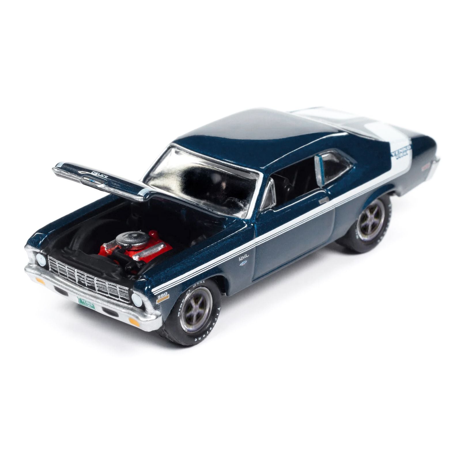 1970 Chevrolet Nova Yenko Deuce Fathom Blue Metallic with White Stripes "Muscle Cars USA" Series 1/64 Diecast Model Car by Johnny Lightning