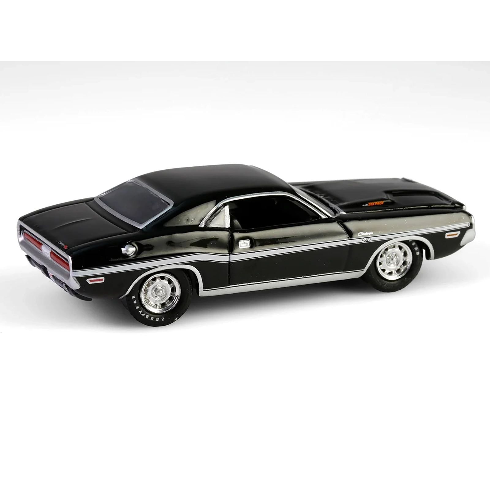 1970 Dodge Challenger R/T 440 Black with White Stripes "Barrett-Jackson" Series 15 1/64 Diecast Model Car by Greenlight