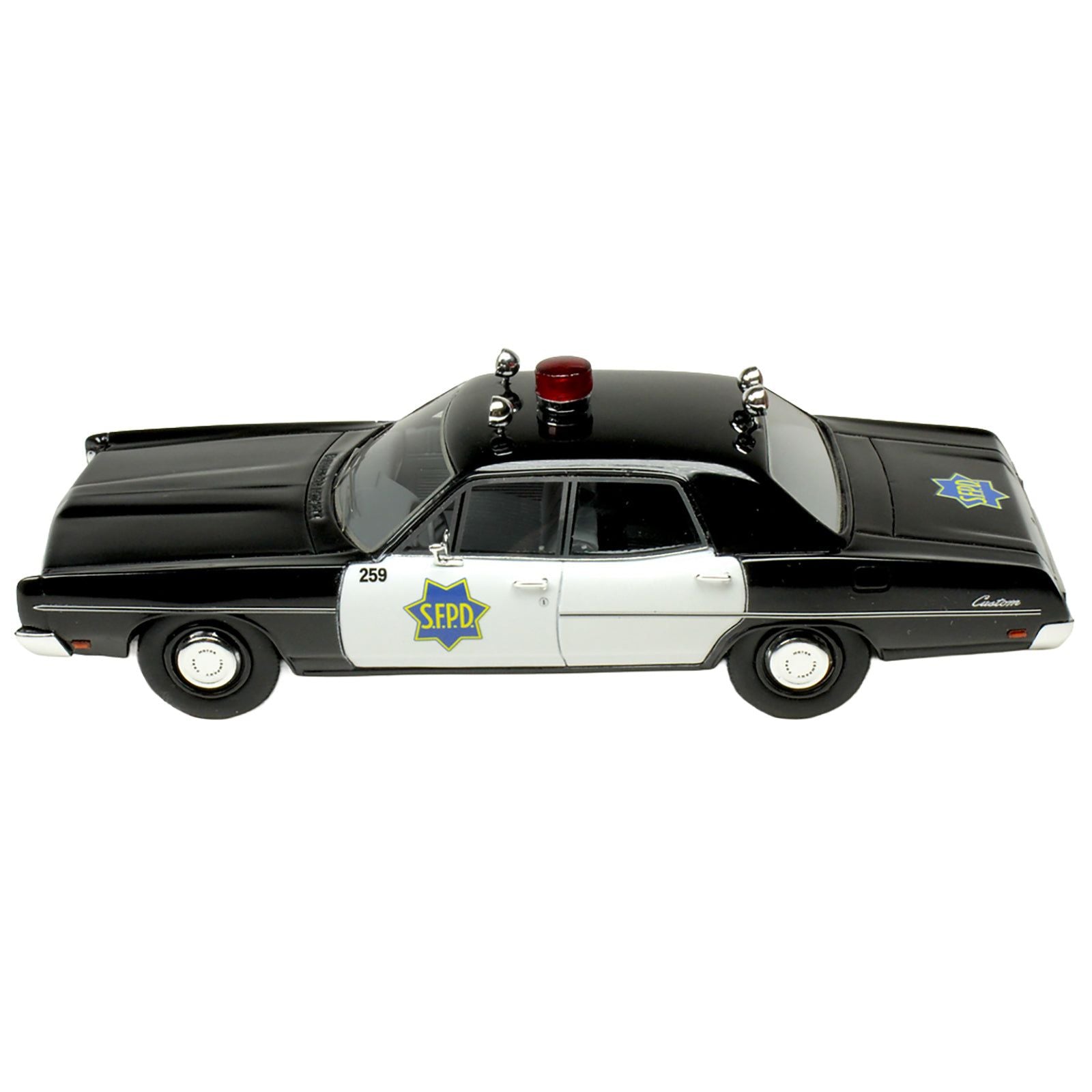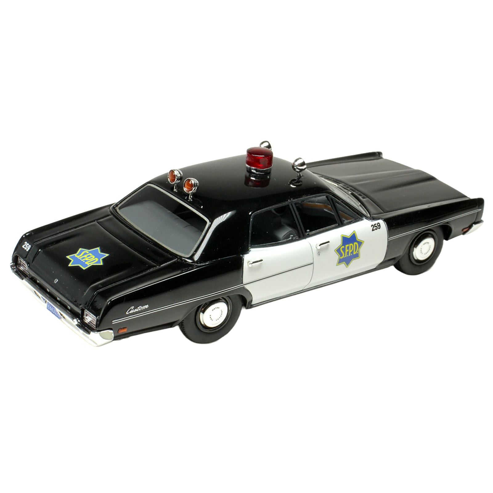 - Brand new 1/43 scale car model of 1970 Ford Custom Police Car "San Francisco Police Department" Black and White Limited Edition to 200 pieces Worldwide model car by Goldvarg Collection.
