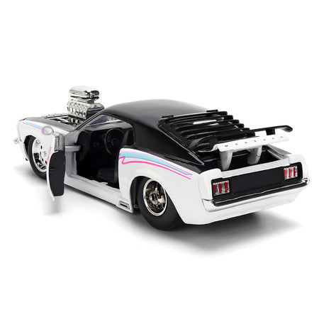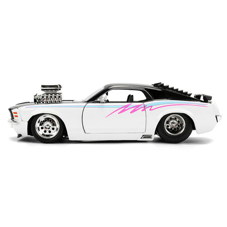 - Brand new 1/24 scale diecast car model of 1970 Ford Mustang Boss 429 Black and White with Graphics "Bigtime Muscle" Series die cast model car by Jada.