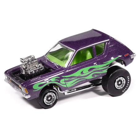 1971 AMC Gremlin Passion Purple Metallic with Green Flames and Interior "Zingers!" Series 1/64 Diecast Model Car by Johnny Lightning