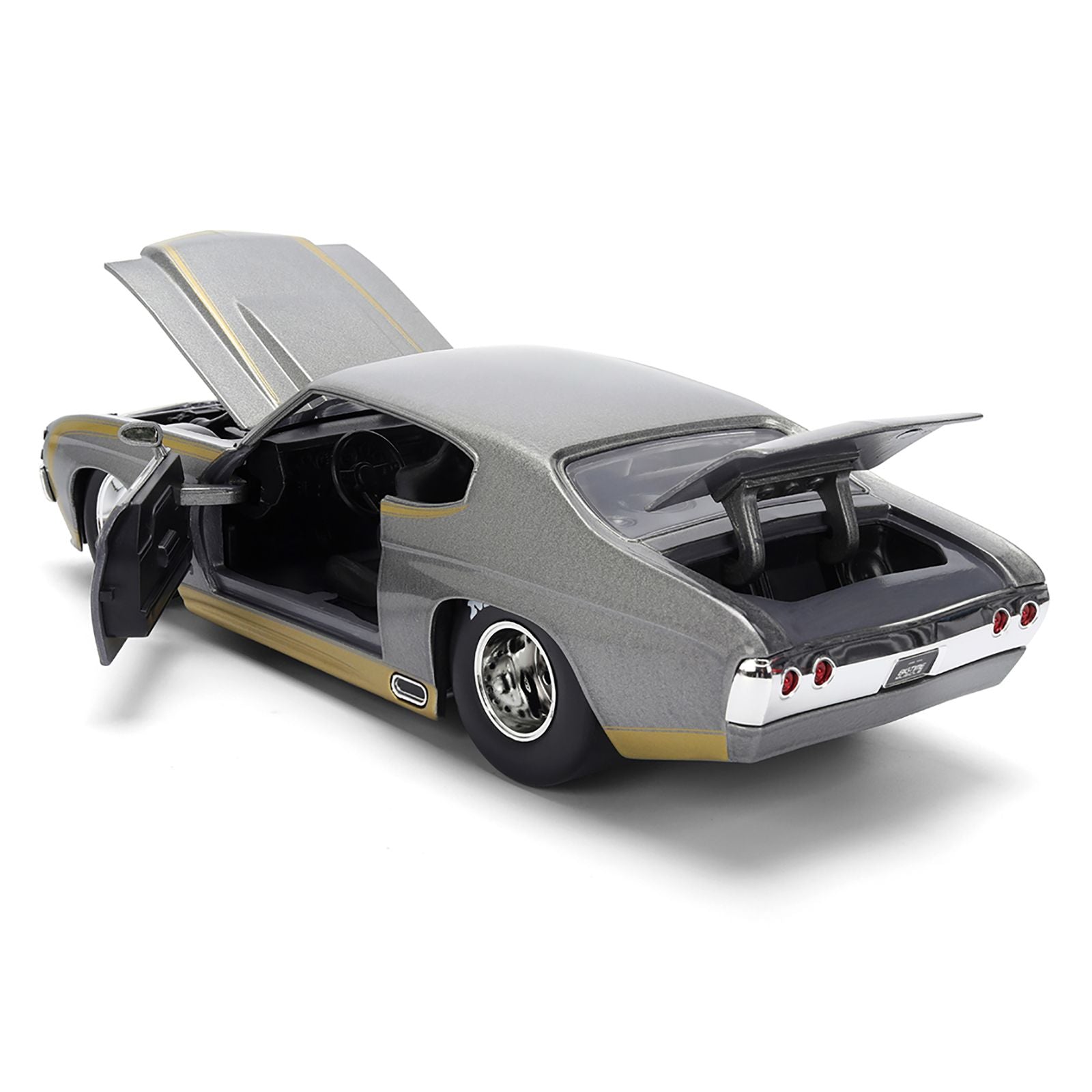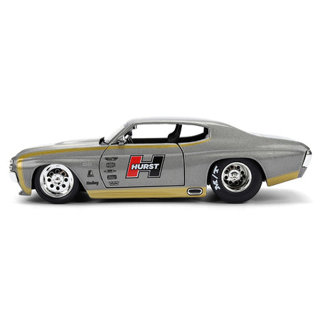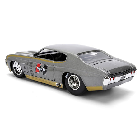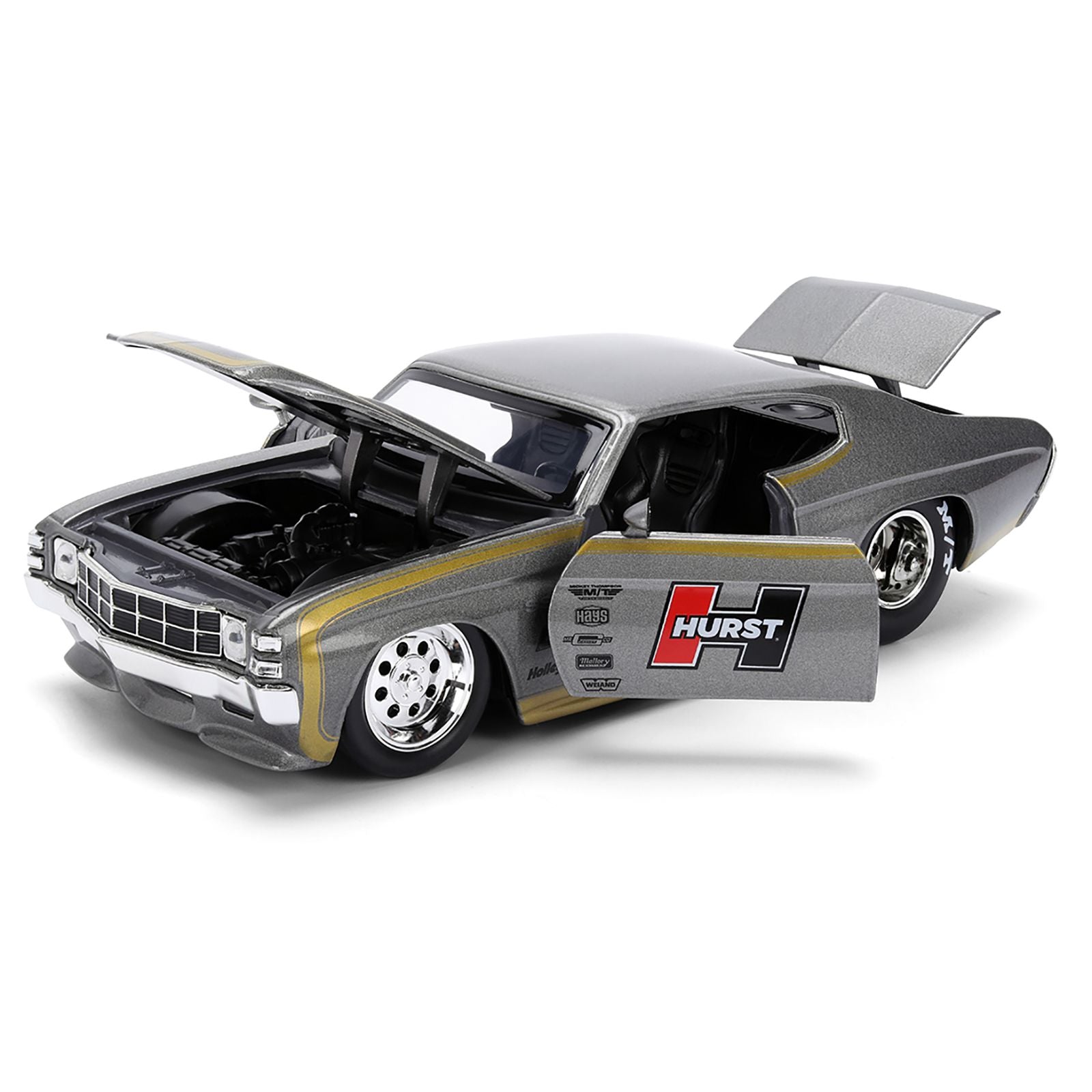- Brand new 1/24 scale diecast car model of 1971 Chevrolet Chevelle SS "Hurst" Gray Metallic with Gold Stripes "Bigtime Muscle" Series die cast model car by Jada.