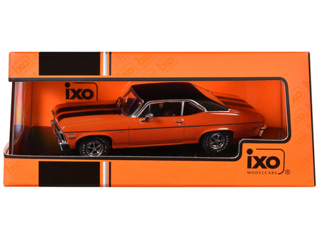 1971 Chevrolet Nova SS Orange with Black Stripes and Black Vinyl Top 1/43 Diecast Model by IXO Models