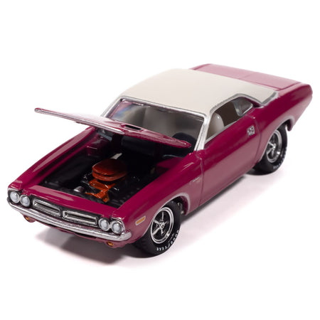 1971 Dodge Challenger R/T Panther Pink with White Top and Interior "Classic Gold Collection" 1/64 Diecast Model Car by Johnny Lightning