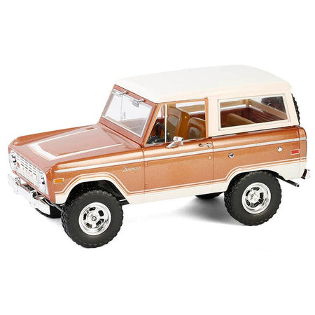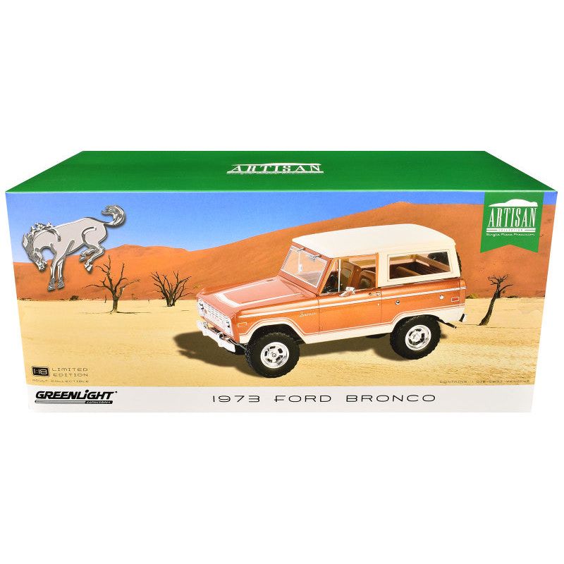 - Brand new 1/18 scale diecast car model of 1973 Ford Bronco Hot Ginger Metallic with Cream Top "Artisan Collection" die cast model car by Greenlight.