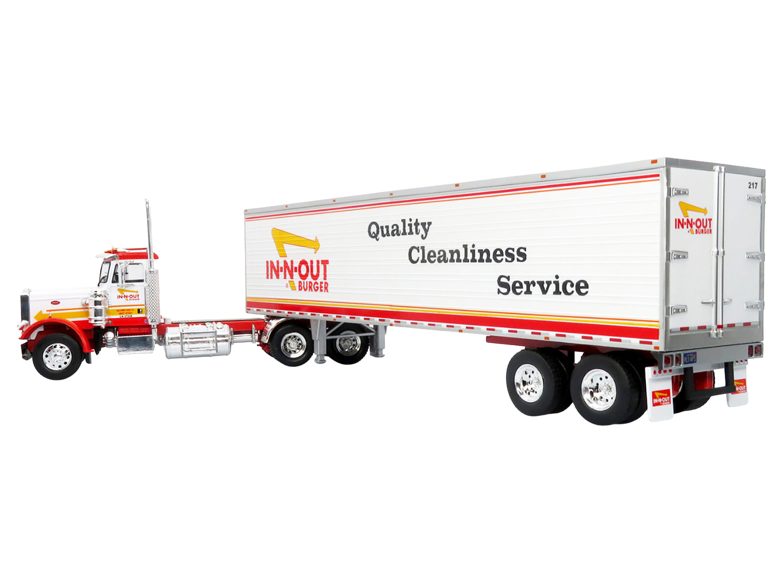 - Brand new 1/43 scale diecast model of 1973 Peterbilt 359 Truck with Refrigerated Trailer "In-N-Out Burger" White and Red "North American Vintage Truck Collection" die cast model by Iconic Replicas.