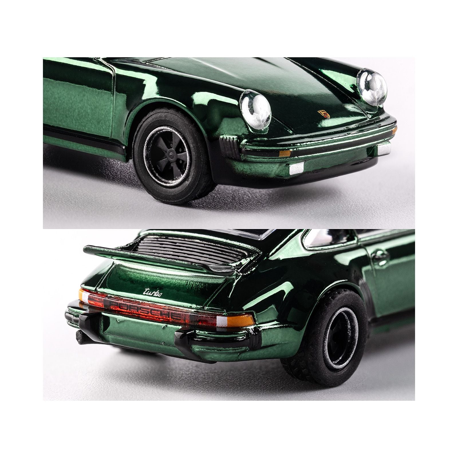 - Brand new 1/64 scale diecast car model of 1975 Porsche 930 Turbo Green Metallic "Collection" Series die cast model car by Majorette.