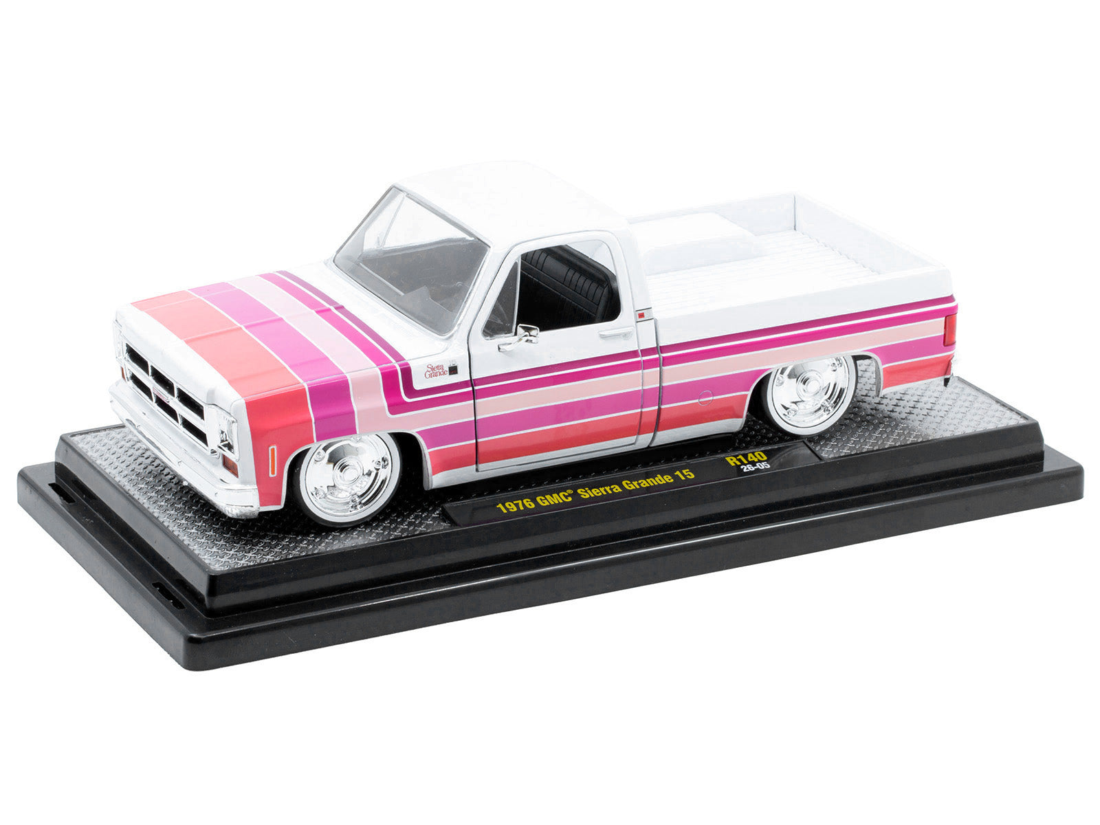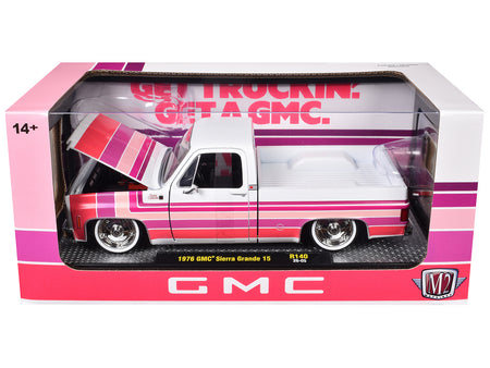 - Brand new 1/24 scale diecast car model of 1976 GMC Sierra Grande 15 Pickup Truck White with Stripes Limited Edition to 9250 pieces Worldwide die cast model car by M2 Machines.