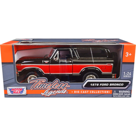 - Brand new 1/24 scale diecast car model of 1978 Ford Bronco Ranger XLT with Spare Tire Black and Red "Timeless Legends" Series die cast model car by Motormax.
