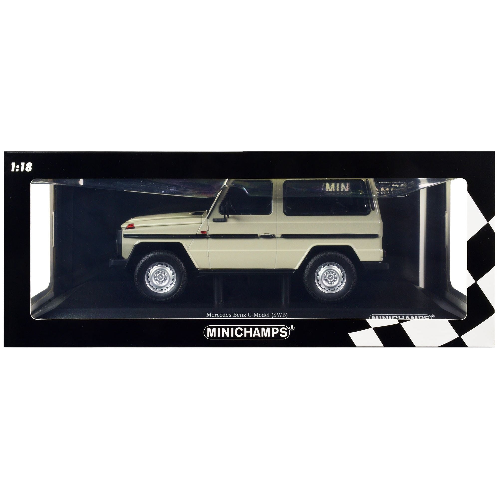 - Brand new 1/18 scale diecast car model of 1980 Mercedes-Benz G-Model (SWB) Gray with Black Stripes Limited Edition to 504 pieces Worldwide die cast model car by Minichamps.
