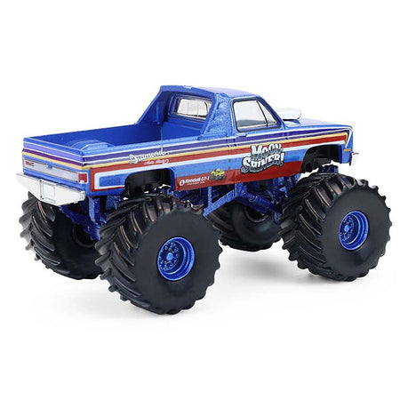 - Brand new 1/64 scale diecast car model of 1982 GMC Sierra 2500 Monster Truck "Moonshiner!" Blue Metallic with Stripes "Kings of Crunch" Series 16 die cast model car by Greenlight.