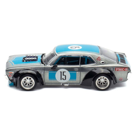 - Brand new 1/64 scale diecast car model of Datsun Laurel C130 RHD (Right Hand Drive) #15 Raw Metal with Blue Stripes "APA XPO 2025 Exclusive" die cast model car by Pop Race.