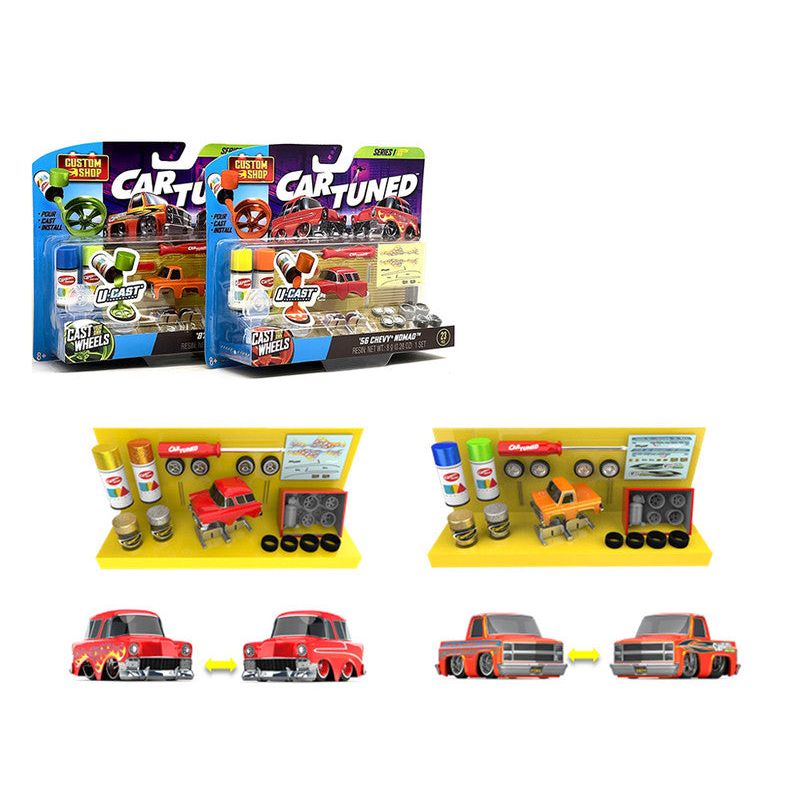 - Brand new diecast car models of 1987 Chevrolet C10 Pickup Truck Orange and 1956 Chevrolet Nomad Red "Custom Shop" 2 Car Set die cast model cars by CarTuned.