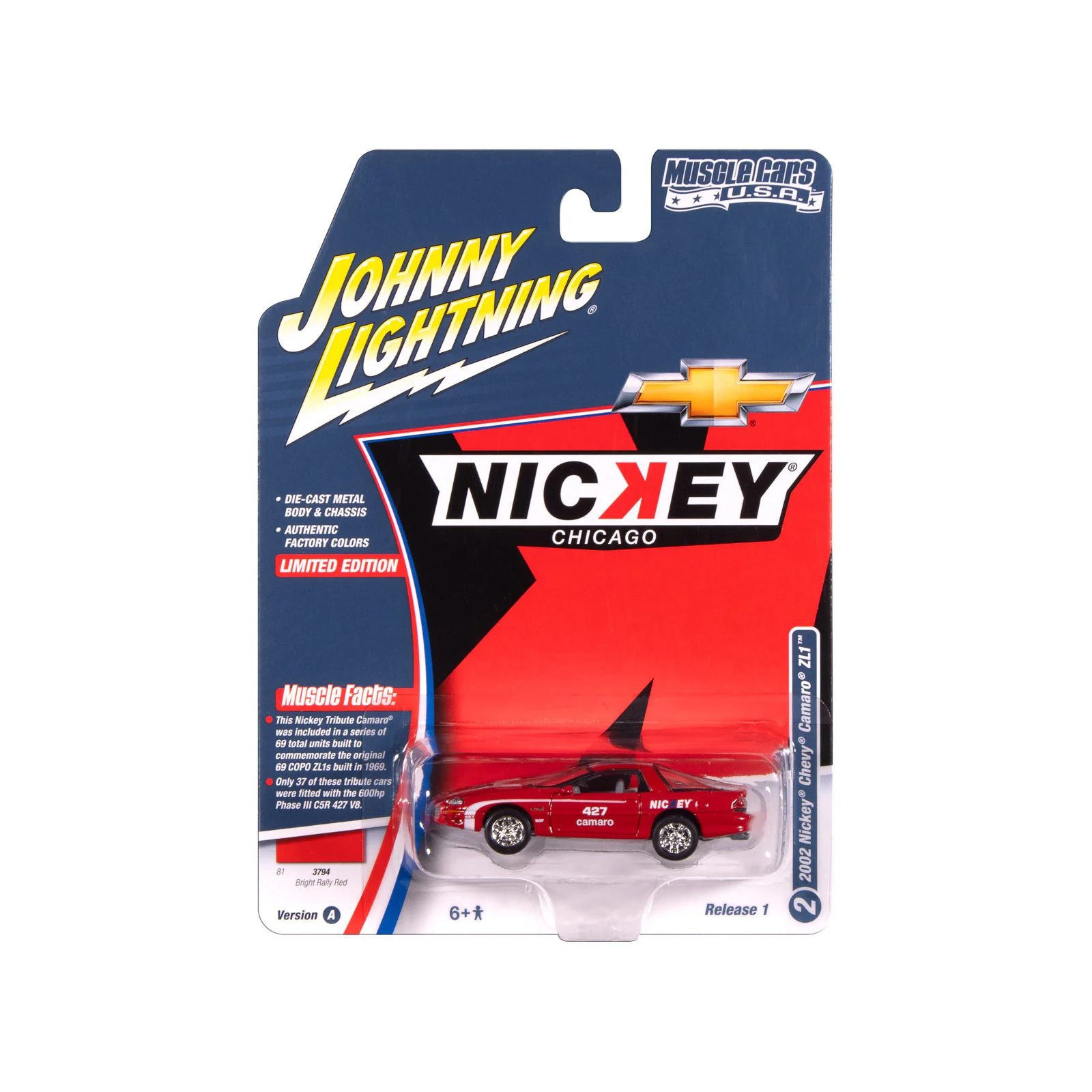 2002 Chevrolet Nickey Camaro ZL1 Bright Rally Red with White Stripes "Muscle Cars USA" Series 1/64 Diecast Model Car by Johnny Lightning