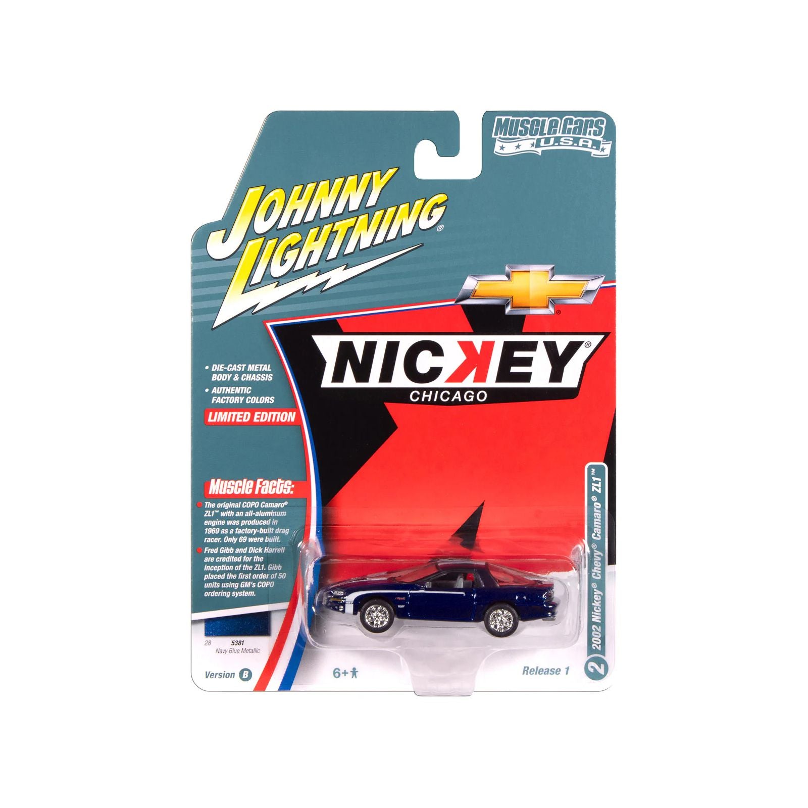 2002 Chevrolet Nickey Camaro ZL1 Navy Blue Metallic with White Stripes "Muscle Cars USA" Series 1/64 Diecast Model Car by Johnny Lightning