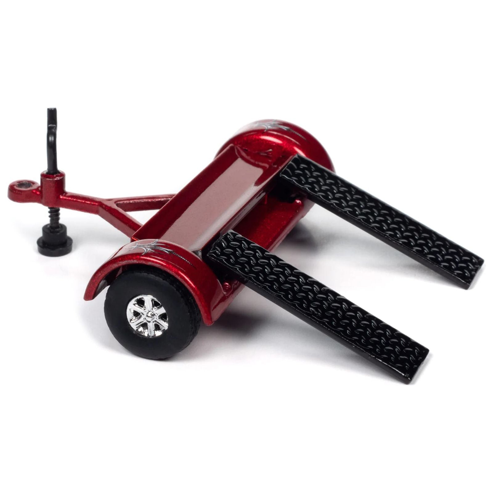 2002 Chevrolet Silverado Pickup Truck Black with Graphics "Hot Rod Customs" and Tow Dolly Red "Tow & Go" Series Limited Edition to 3672 pieces Worldwide 1/64 Diecast Model Car by Johnny Lightning