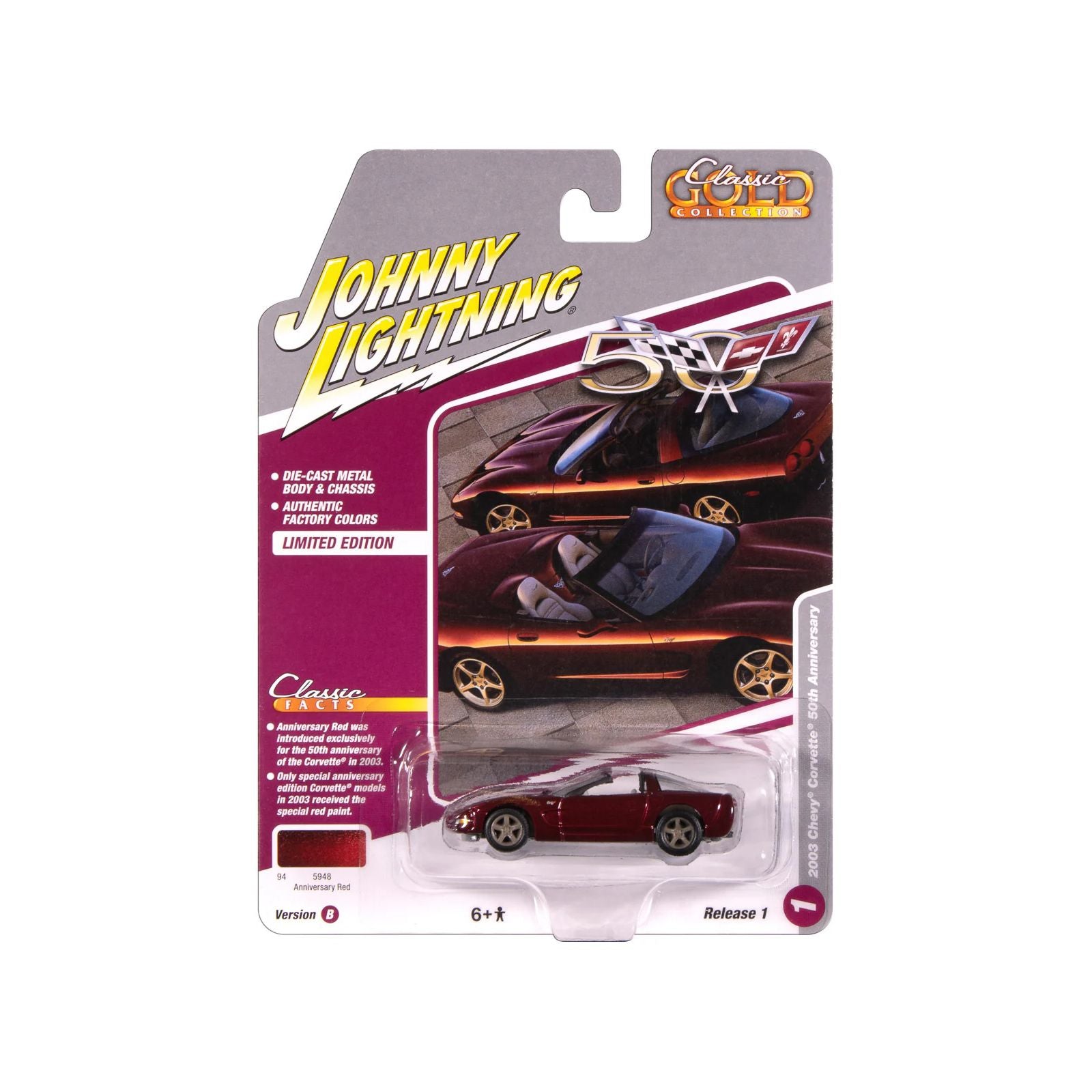 2003 Chevrolet Corvette Convertible "50th Anniversary" Anniversary Red Metallic "Classic Gold Collection" 1/64 Diecast Model Car by Johnny Lightning