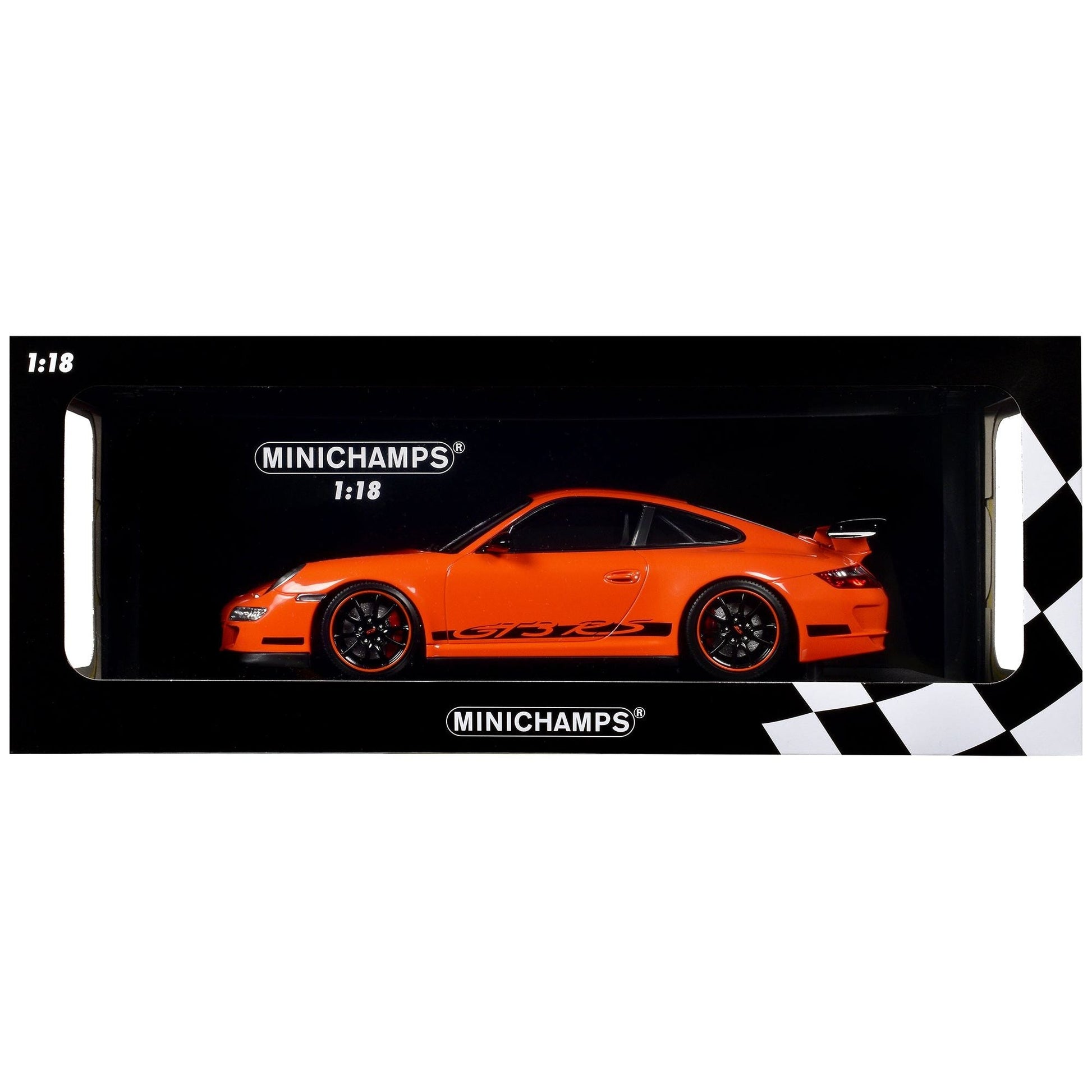 2007 Porsche 911 GT3 RS Orange with Black Stripes 1/18 Diecast Model Car by Minichamps