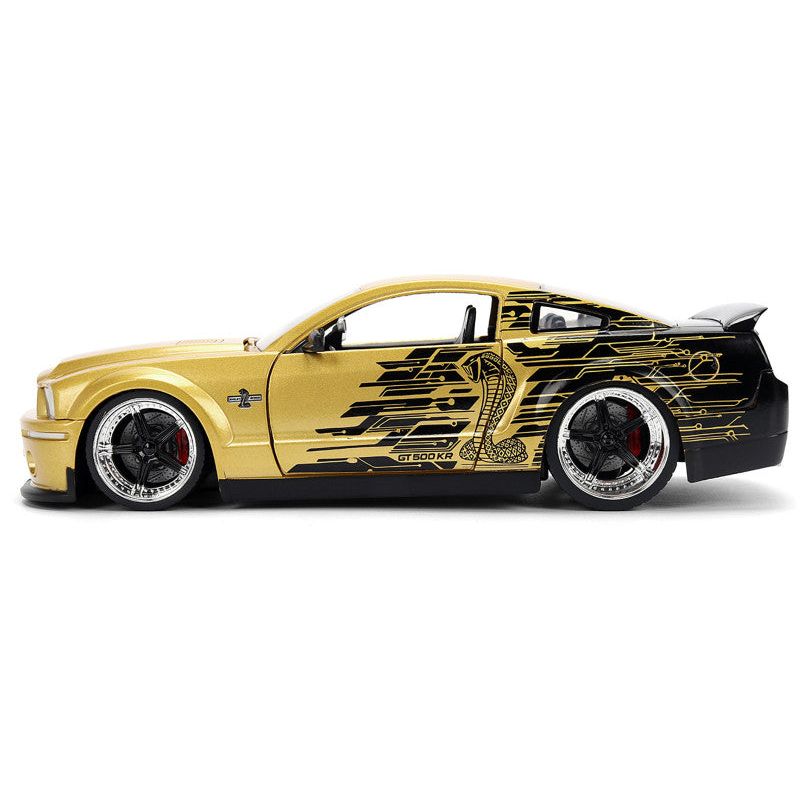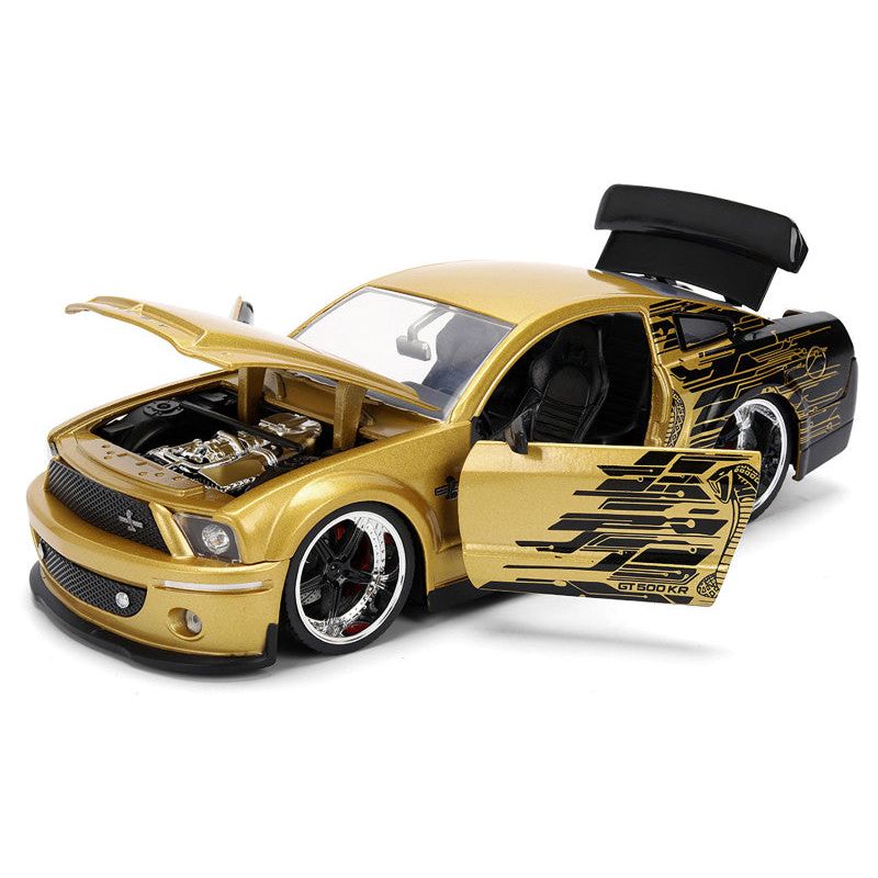 - Brand new 1/24 scale diecast car model of 2008 Ford Shelby Mustang GT-500KR Gold Metallic and Black with Graphics "Bigtime Muscle" Series die cast model car by Jada.