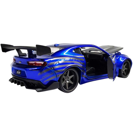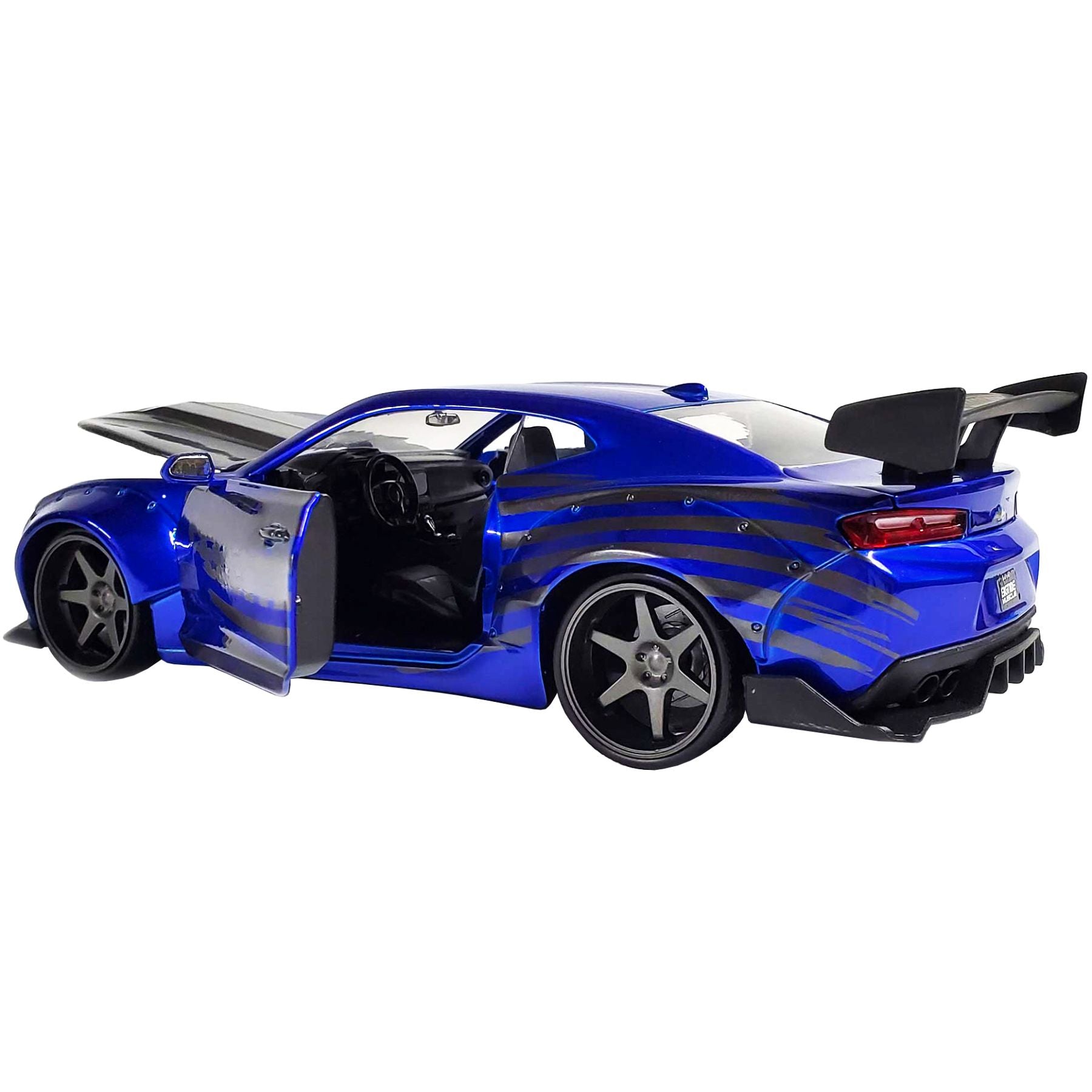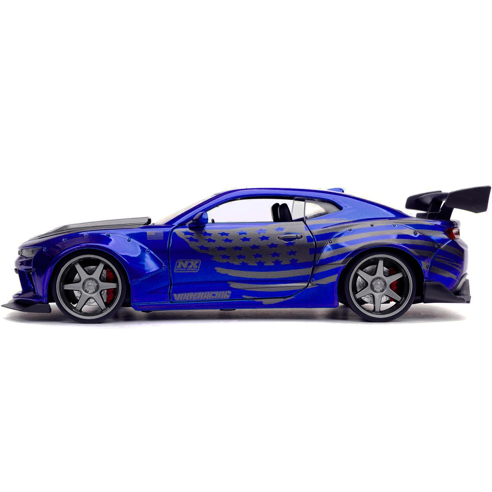 - Brand new 1/24 scale diecast car model of 2016 Chevrolet Camaro Widebody Candy Blue with Gray Metallic Hood and American Flag Graphics "Bigtime Muscle" Series die cast model car by Jada.