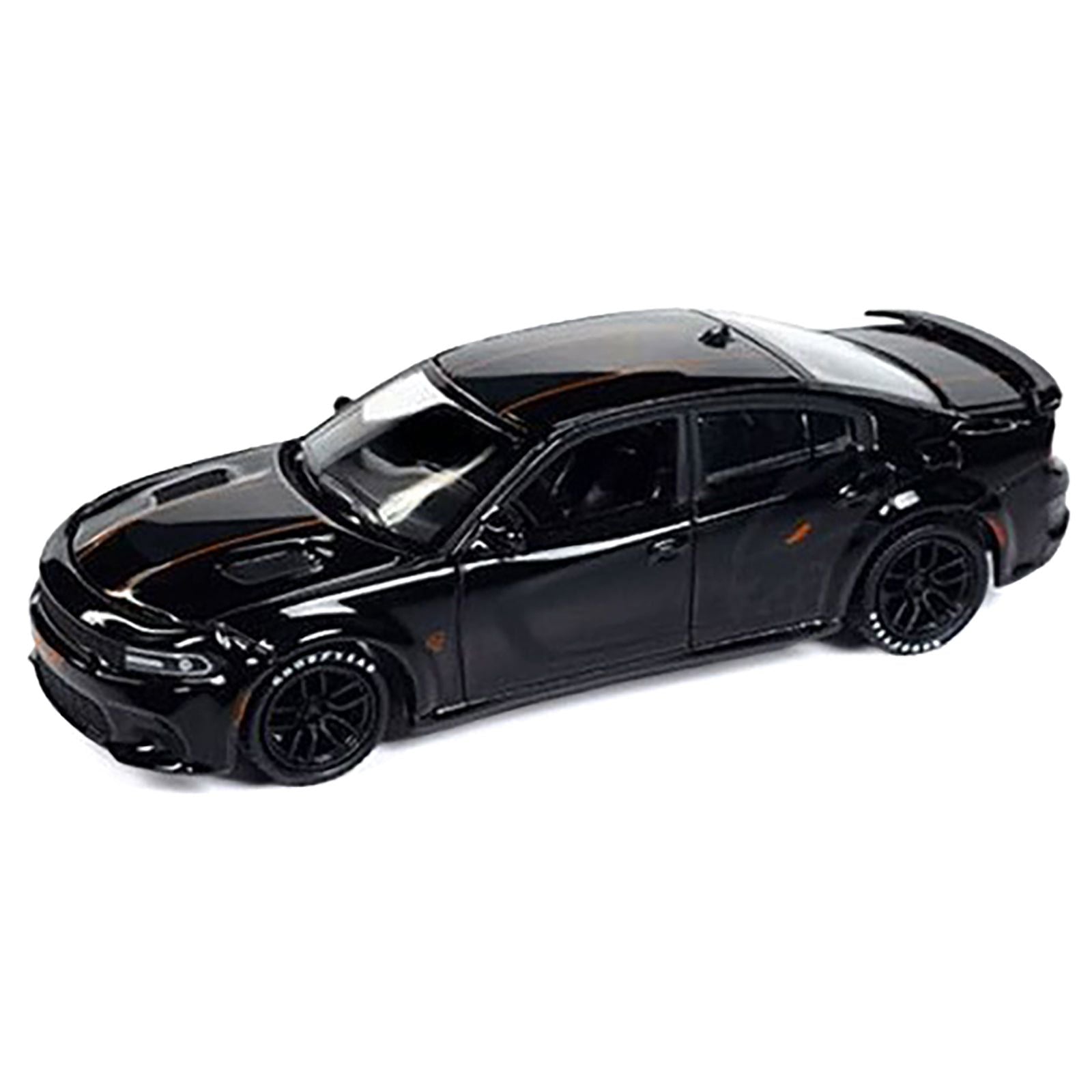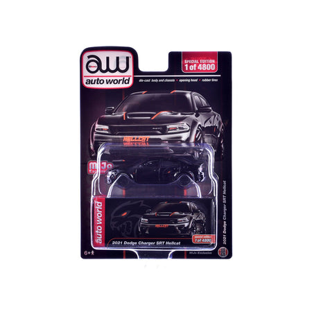 - Brand new 1/64 scale diecast car model of 2021 Dodge Charger SRT Hellcat Black with Graphics and Orange Stripes Limited Edition to 4800 pieces Worldwide die cast model car by Auto World.