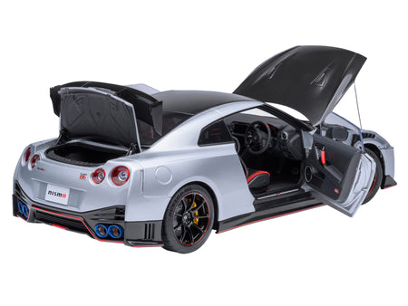 2022 Nissan GT-R (R35) Nismo Special Edition RHD (Right Hand Drive) Ultimate Metal Silver with Carbon Hood and Top 1/18 Model Car by Autoart