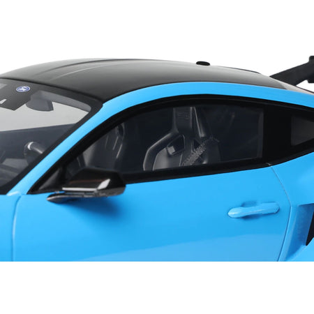 - Brand new 1/18 scale car model of 2024 Ford Mustang GTD Grabber Blue with Black Top model car by GT Spirit.