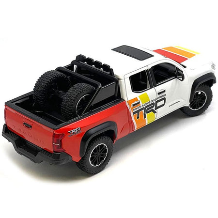 2024 Toyota Tundra TRD Off Road Edition Pickup Truck White and Red with TRD Stripes with Sunroof and Wheel Rack Limited Edition to 2400 pieces Worldwide 1/24 Diecast Model Car