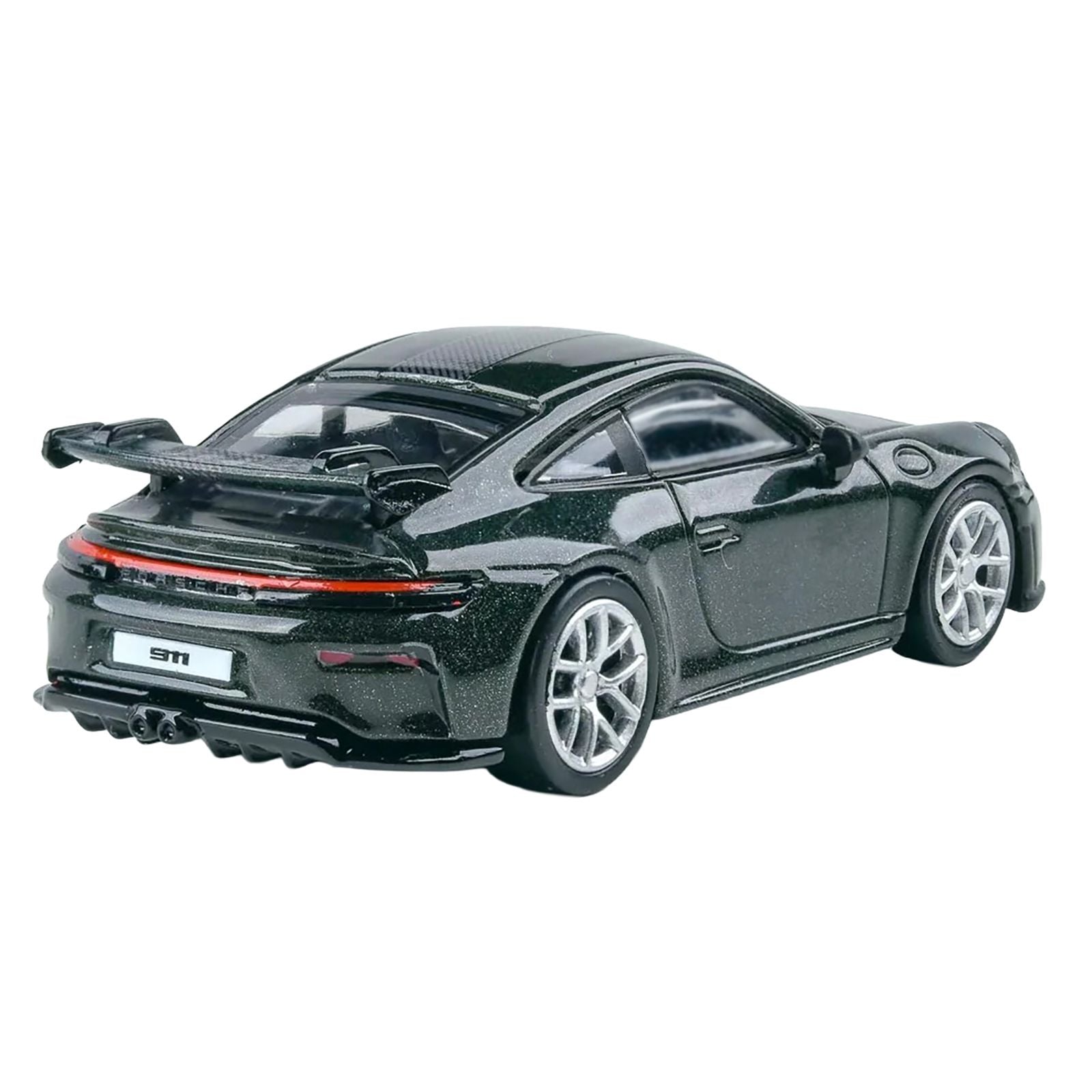 2025 Porsche 911 GT3 (992.2) Oak Green Metallic Neo with Carbon Stripe 1/64 Diecast Model Car by Paragon