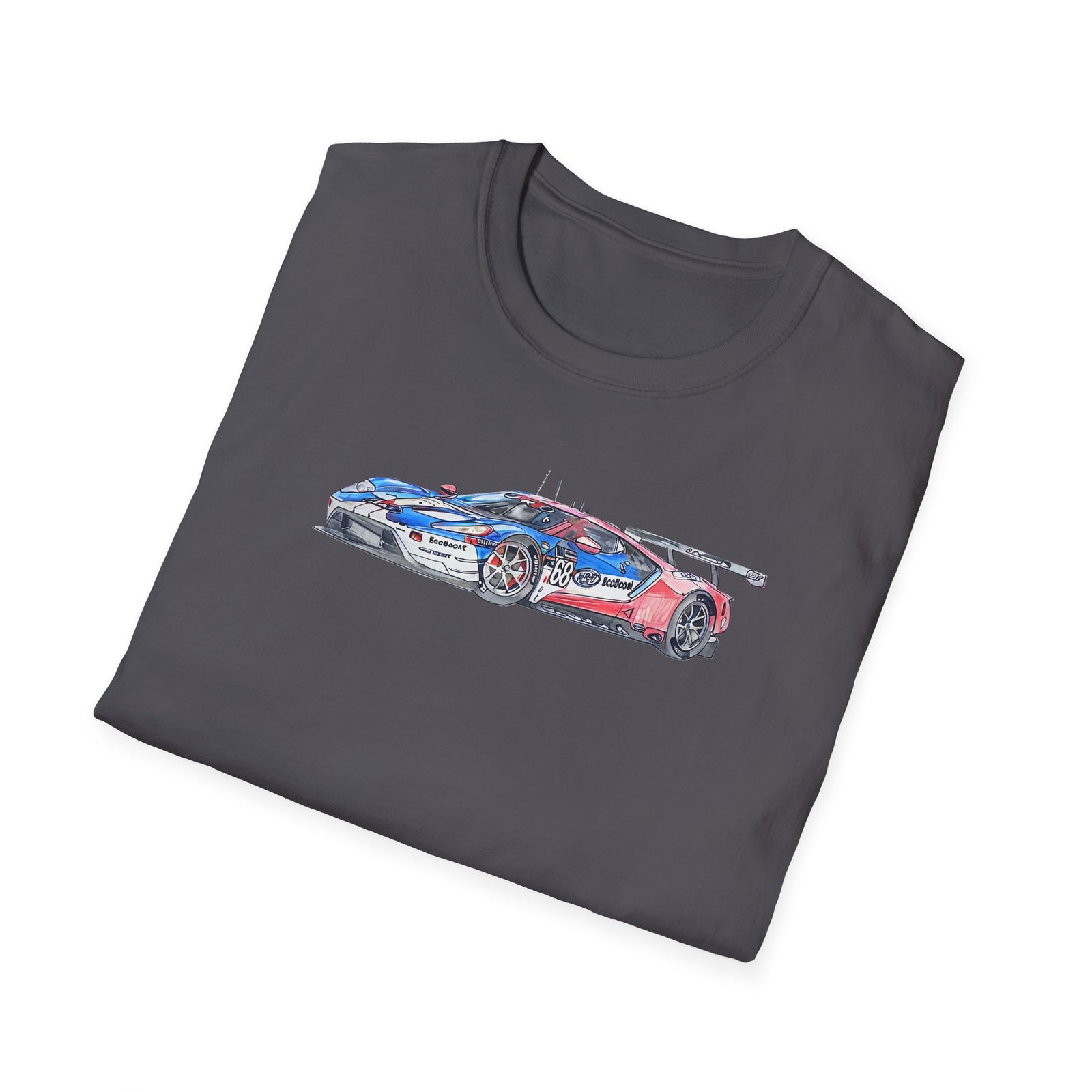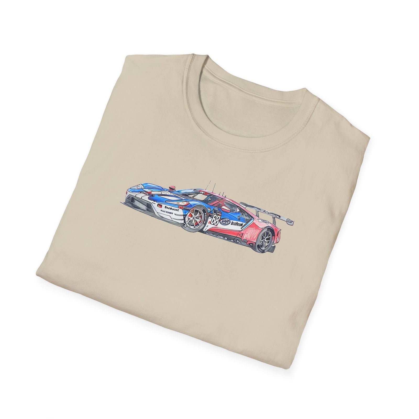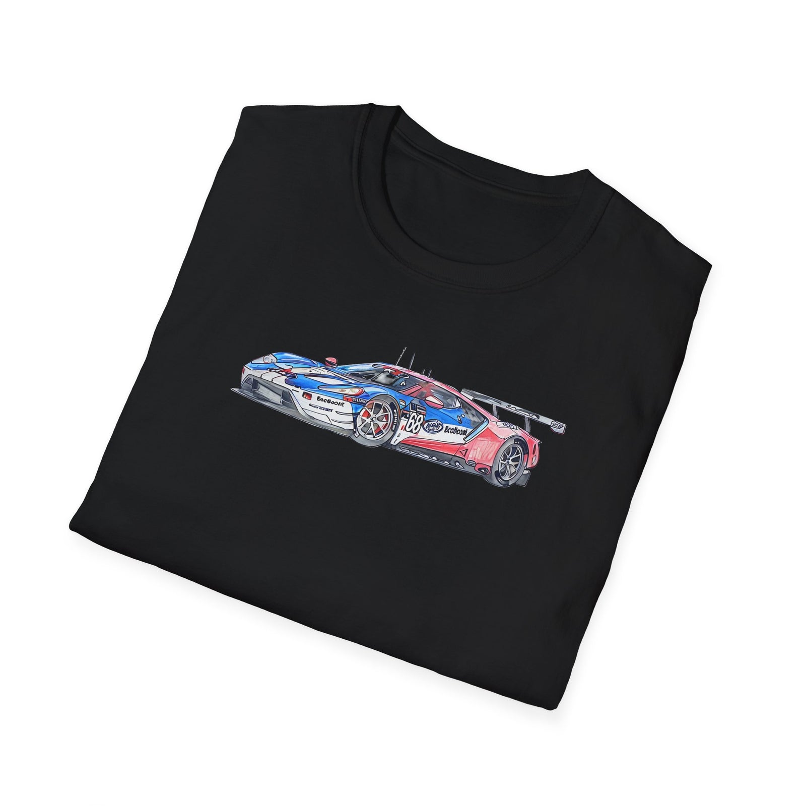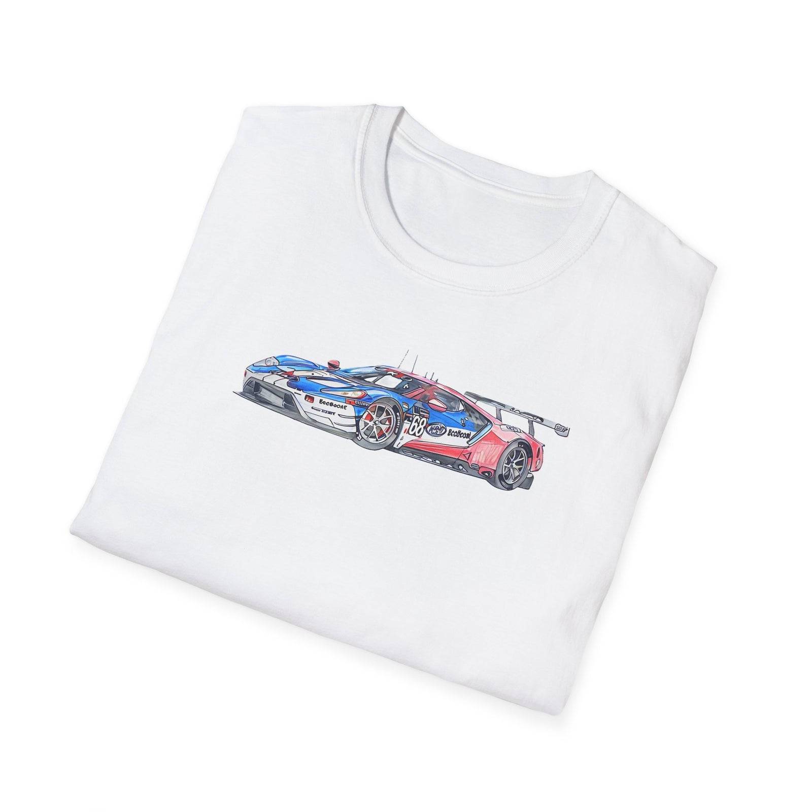Sketch art T-Shirt - 24H of Le Mans (2019) Ford GT #68 Sebastien Bourdais - Joey Hand - Dirk Muller - Unisex