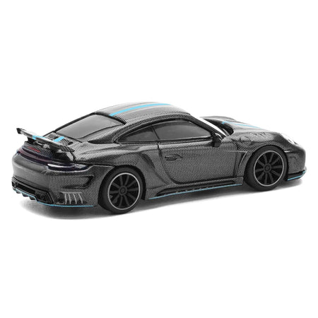 992 Stinger GTR Carbon Edition with Blue Stripe 1/64 Diecast Model Car by Pop Race