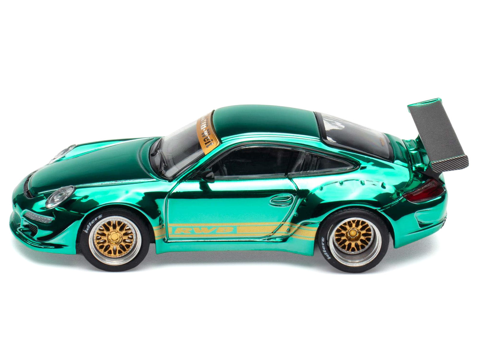 - Brand new 1/64 scale diecast car model of 997 RWB Spectraflame Teal with Gold Stripes "Tokyo Auto Salon - Hong Kong 2025" die cast model car by Pop Race.