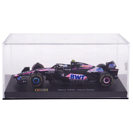 - Brand new 1/43 scale diecast car model of Alpine A524 #10 Pierre Gasly "BWT" "Formula One F1 World Championship" (2024) with Driver Figure and Display Case "Race" Series die cast model car by Bburago.