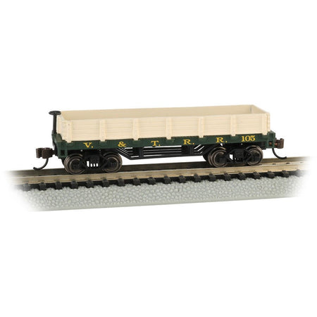 Old-Time Gondola - VIRGINIA & TRUCKEE - N Scale. The perfect addition for your Old-Time Steam Railroad Layout. Each Gondola features; Metal Wheels, Body-mounted E-Z Mate® Mark II couplers, and a Detailed Underframe.