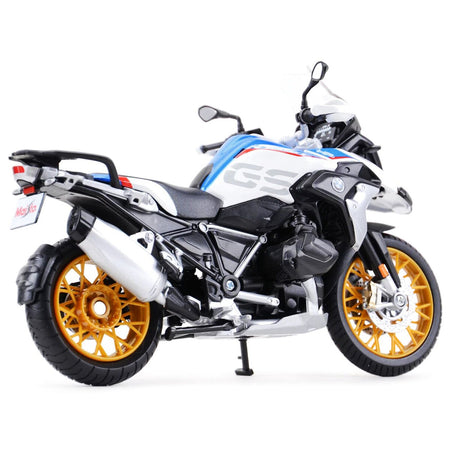 BMW R1250 GS White with Blue and Red Stripes 1/12 Diecast Motorcycle Model by Maisto