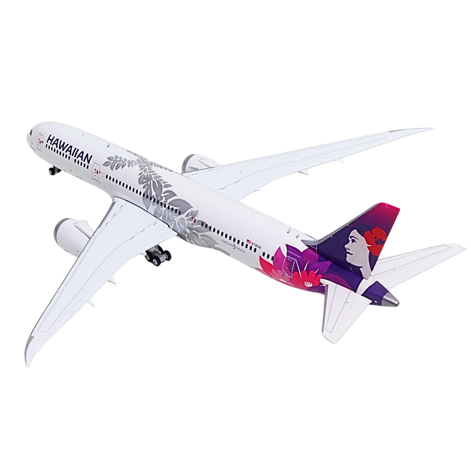 - Brand new 1/400 scale diecast airplane model of Boeing 787-9 Commercial Aircraft "Hawaiian Airlines" (N781HA) White with Purple Tail Graphics die cast model by GeminiJets.