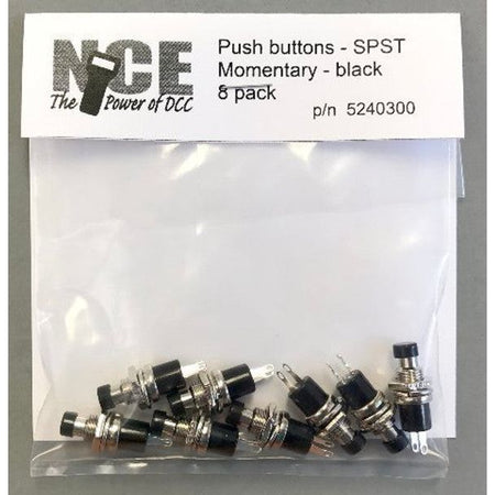 Part Number5240300 NCEBTN8-Black 8 pack N.O. Momentary SPST Pushbutton Black 1/4 (6.35mm) mounting hole