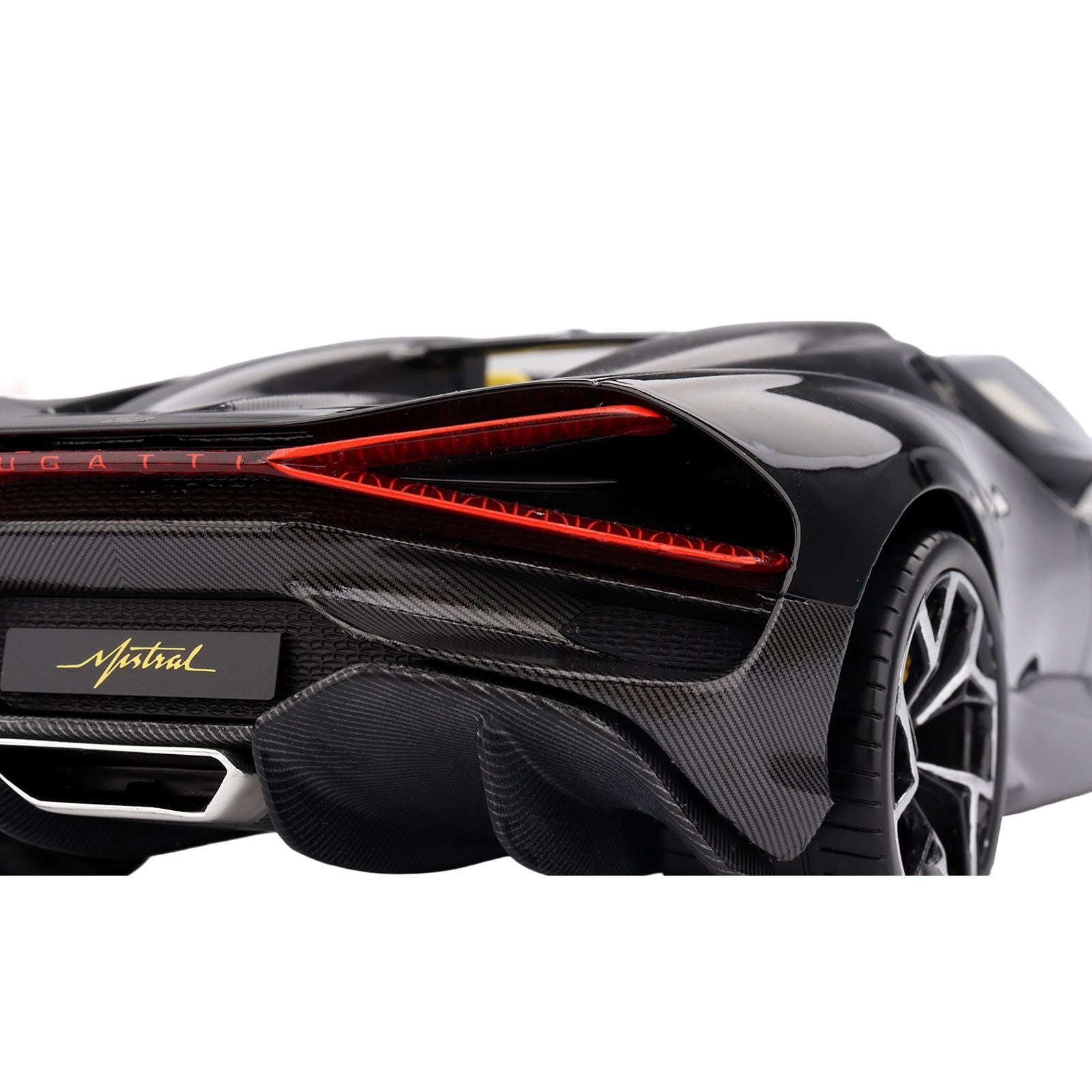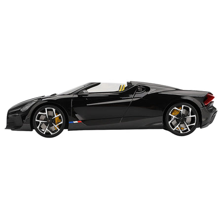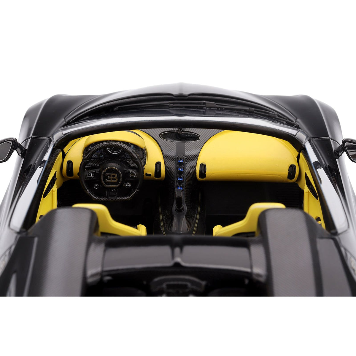 Bugatti W16 Mistral Black with Yellow Interior 1/18 Model Car by Top Speed