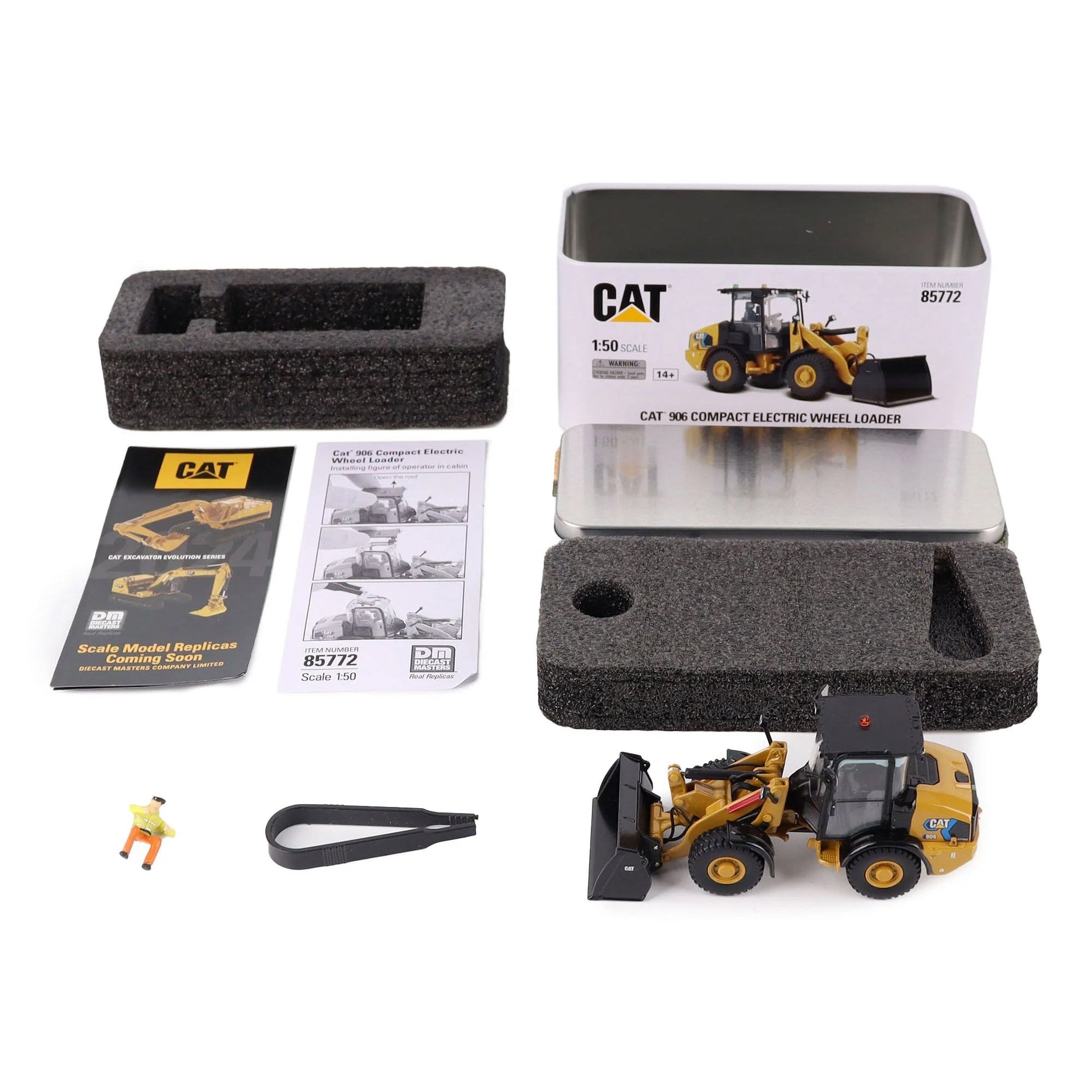 - Brand new 1/50 scale diecast model of CAT Caterpillar 906 Electric Compact Wheel Loader Yellow with Operator "High Line Series" die cast model by Diecast Masters.