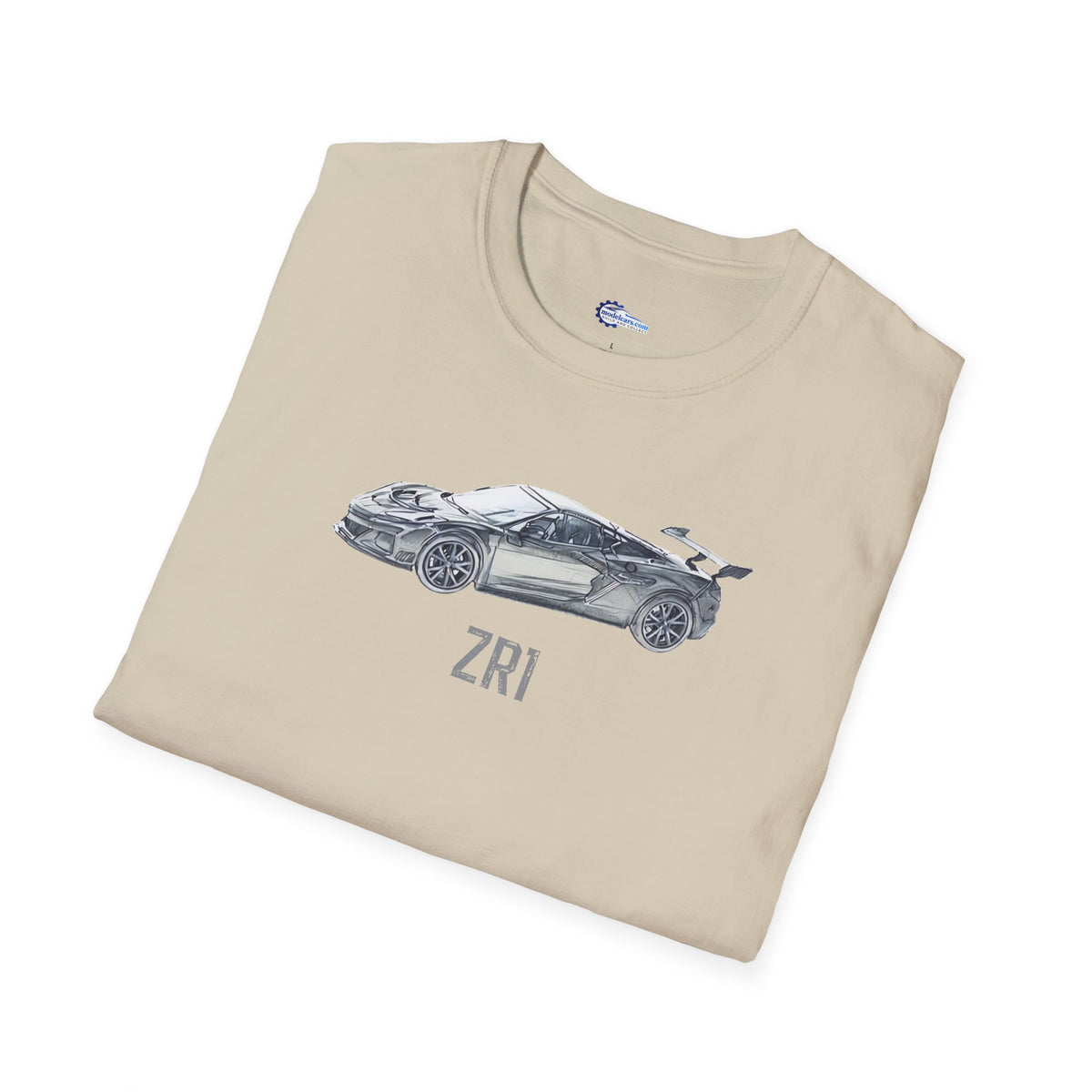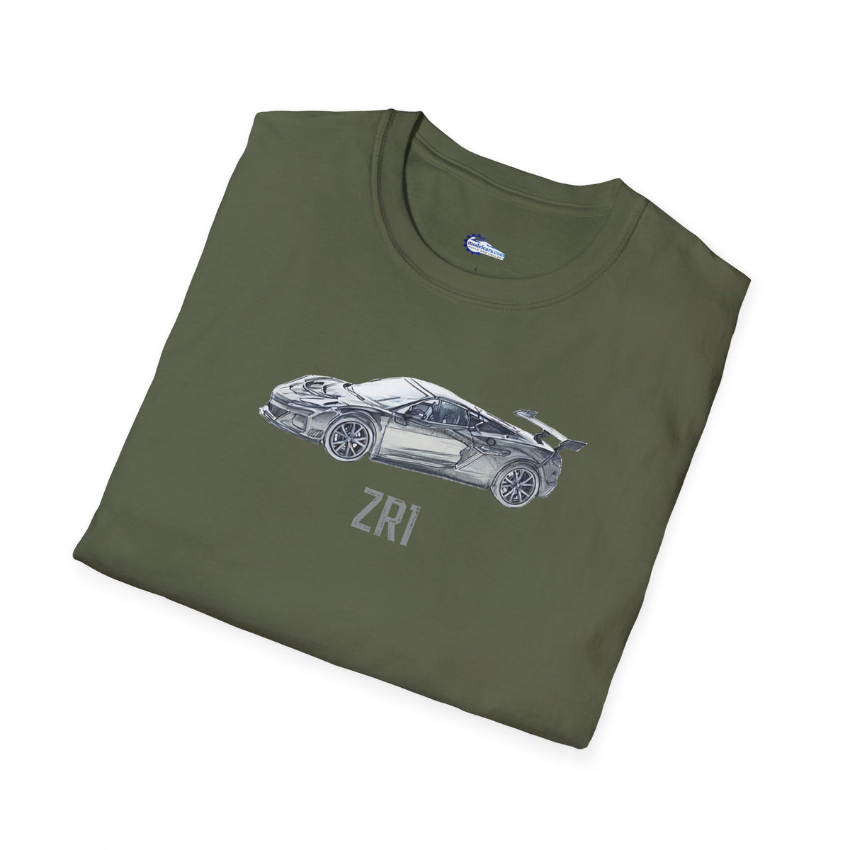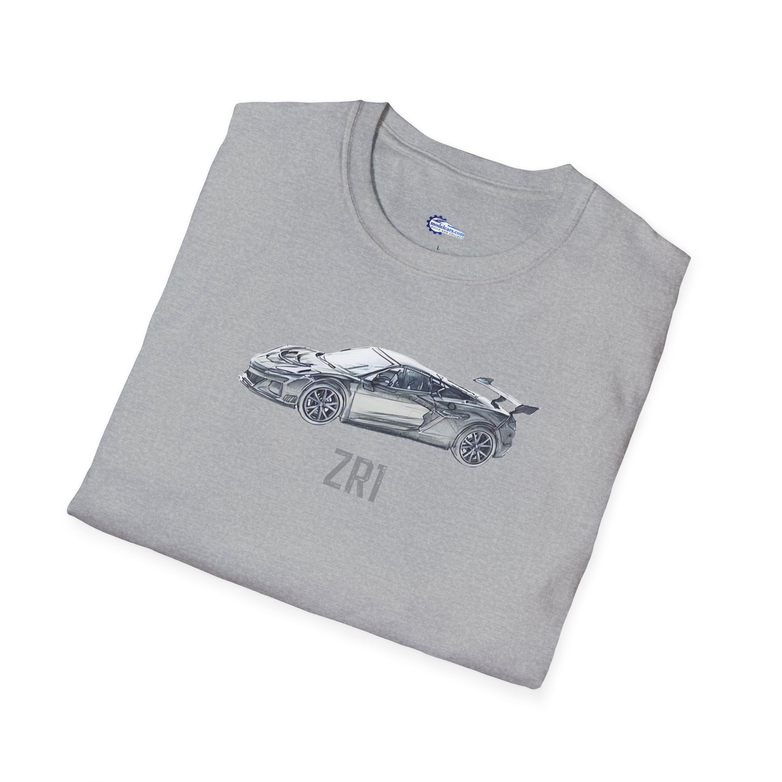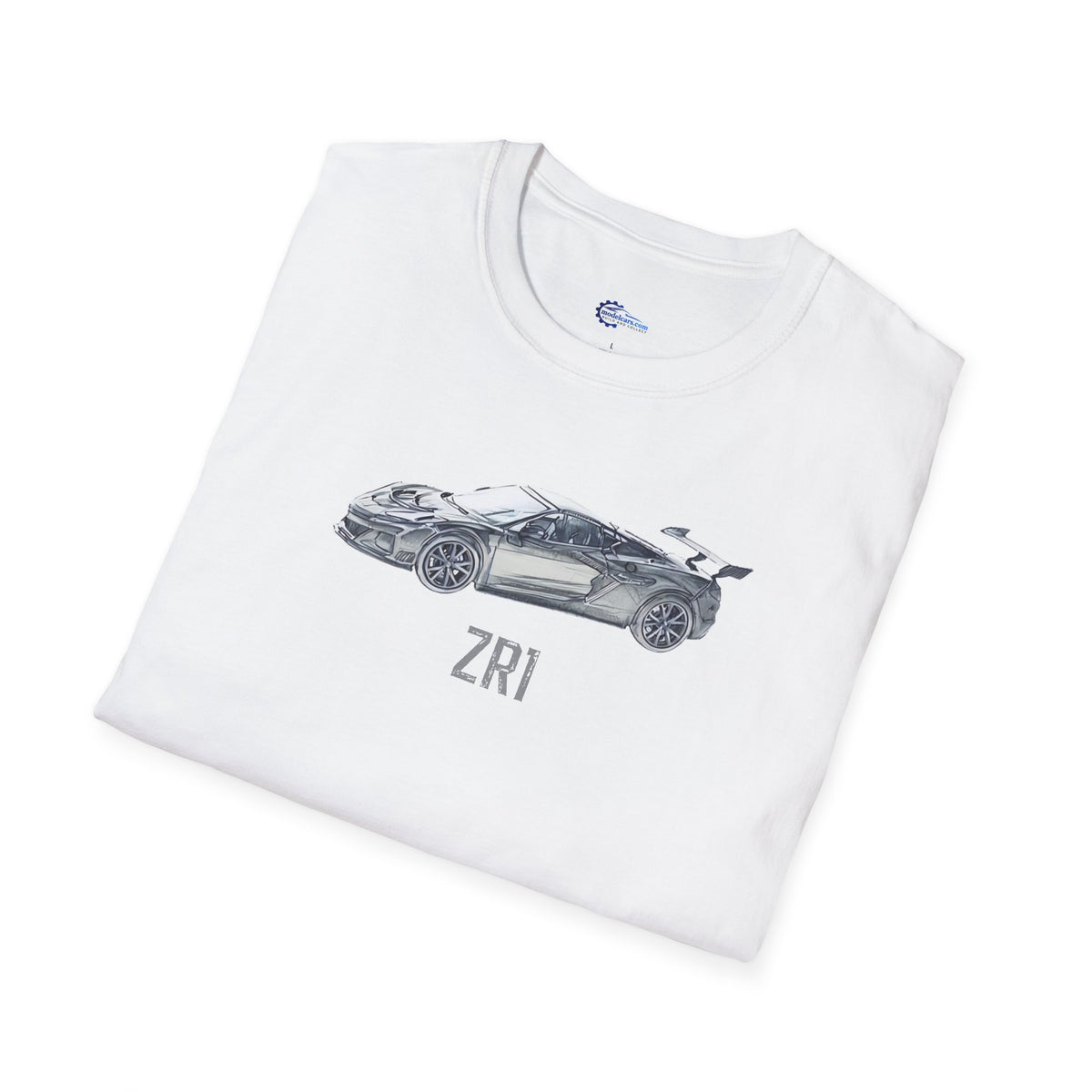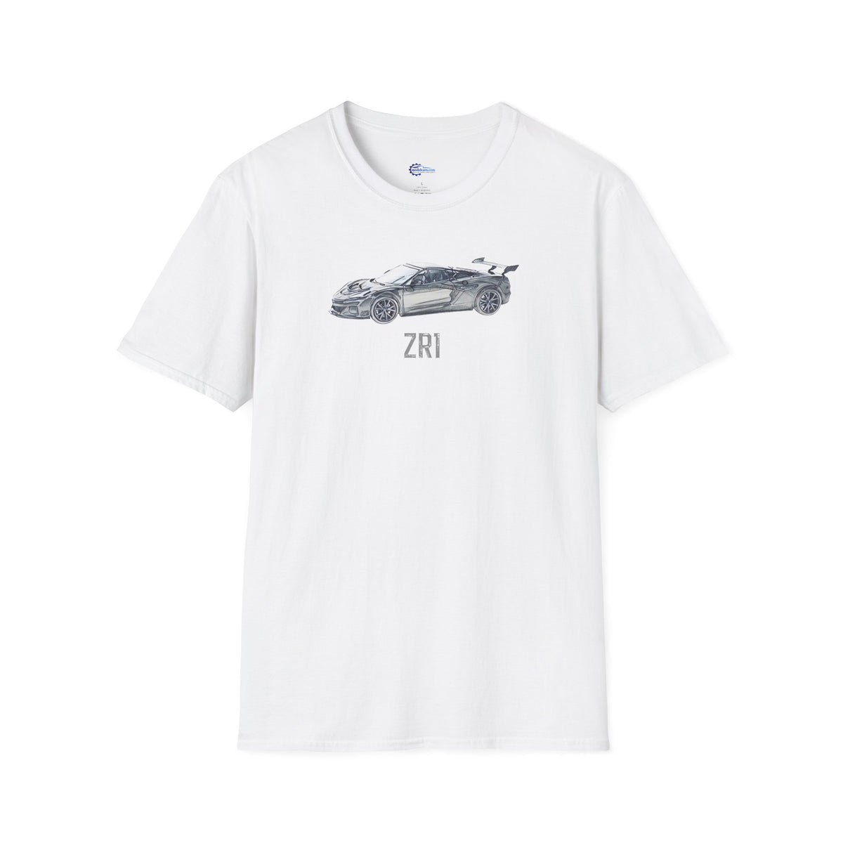 Chevrolet Corvette C8 ZR1 T-Shirt - American Muscle, Black with Blue Stripes and with model designation
