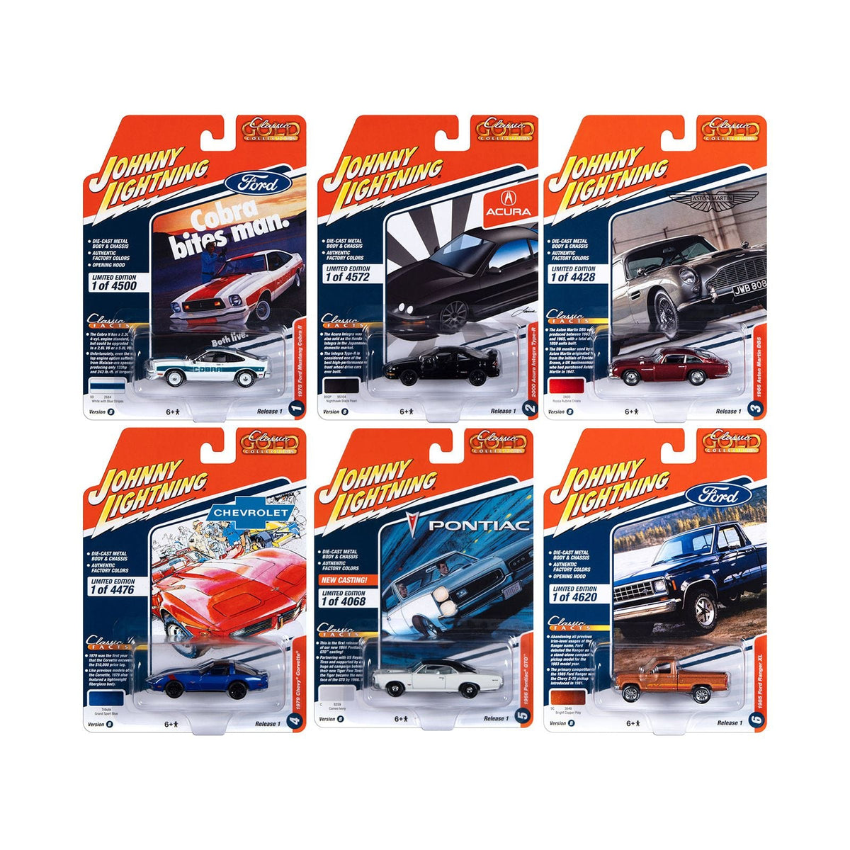 - Brand new 1/64 scale diecast car models of "Classic Gold Collection" 2023 Set B of 6 Cars Release 1 die cast model cars by Johnny Lightning.