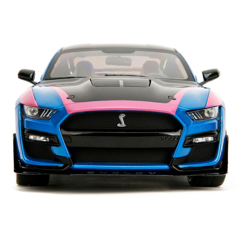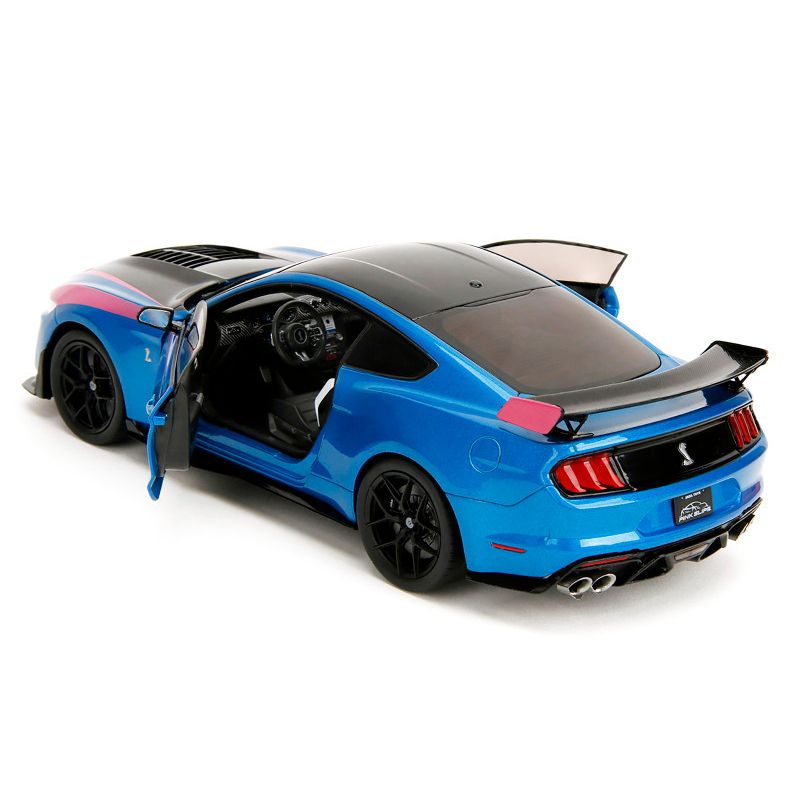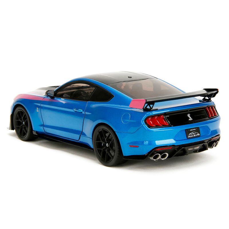 Ford Mustang Shelby GT500 Blue Metallic with Pink Stripes and Black Hood and Top "Pink Slips" Series 1/18 Diecast Model Car by Jada