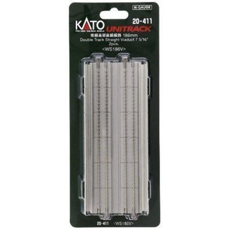 Laying down track in real life requires a lot of hard labor and careful alignment to make sure the tracks are straight and parallel. Fortunately, laying down N Gauge track can be much, much easier with kato UNITRACK. Kato Double track plates allow modelers to create even track spacing with ease, and is available both as ground level plates and as viaduct track! Please note that all of these Concrete Tie Double Track pieces are 100% compatible with the regular double and single track Unitrack pieces and bridges and can be added into your existing Unitrack layouts!
