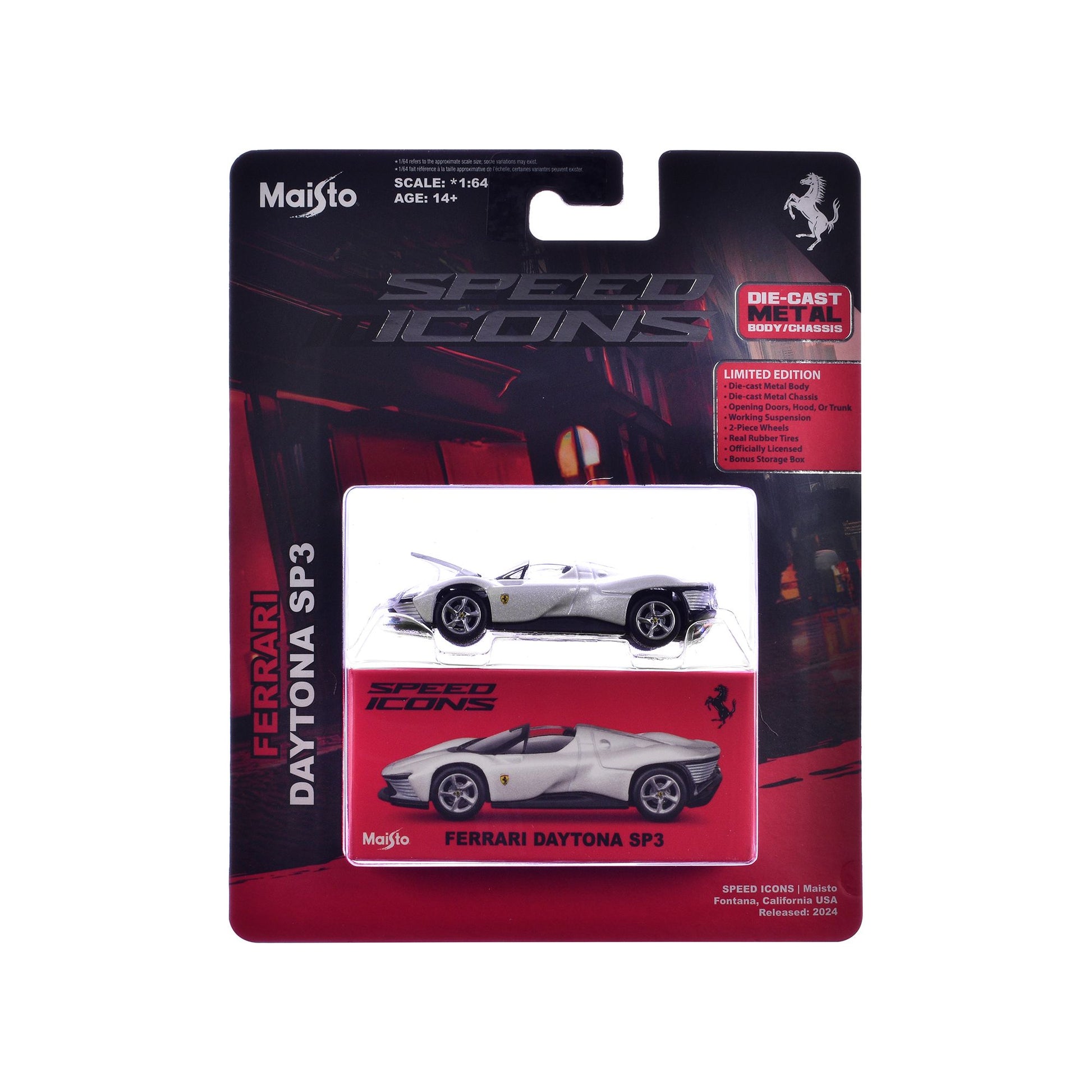 Ferrari Daytona SP3 White Metallic "Speed Icons" Series 1/64 Diecast Model Car by Maisto