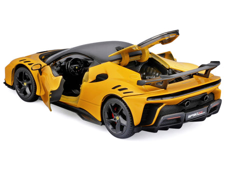 - Brand new 1/24 scale diecast car model of Ferrari SF90 XX Stradale Yellow with Black Top "Race and Play" Series die cast model car by Bburago.