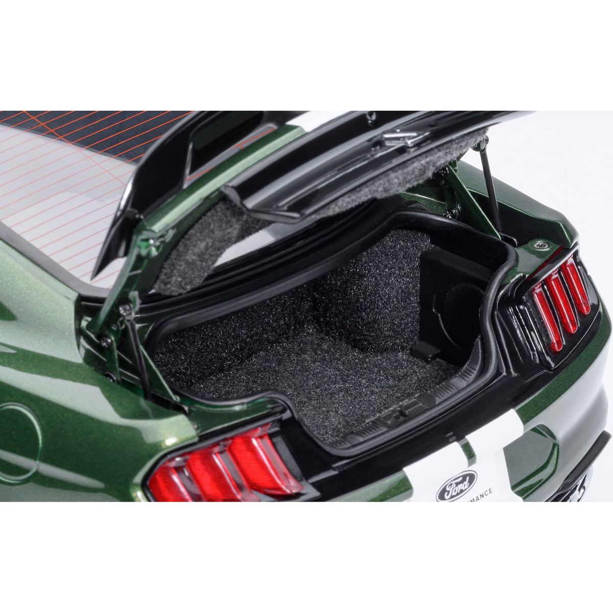- Brand new 1/18 scale car model of Ford Mustang Shelby GT500 Eruption Green Metallic with White Stripes model car by Autoart.