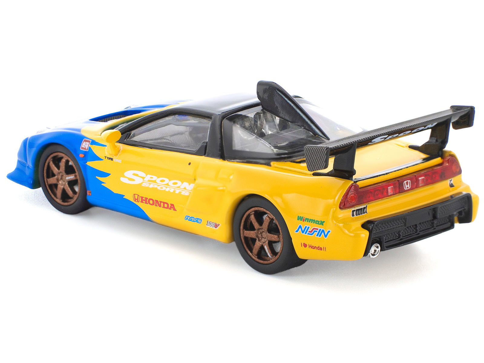 - Brand new 1/64 scale diecast car model of Honda NSX-R GT RHD (Right Hand Drive) "Spoon Sports" Blue and Yellow with Black Top die cast model car by Pop Race.